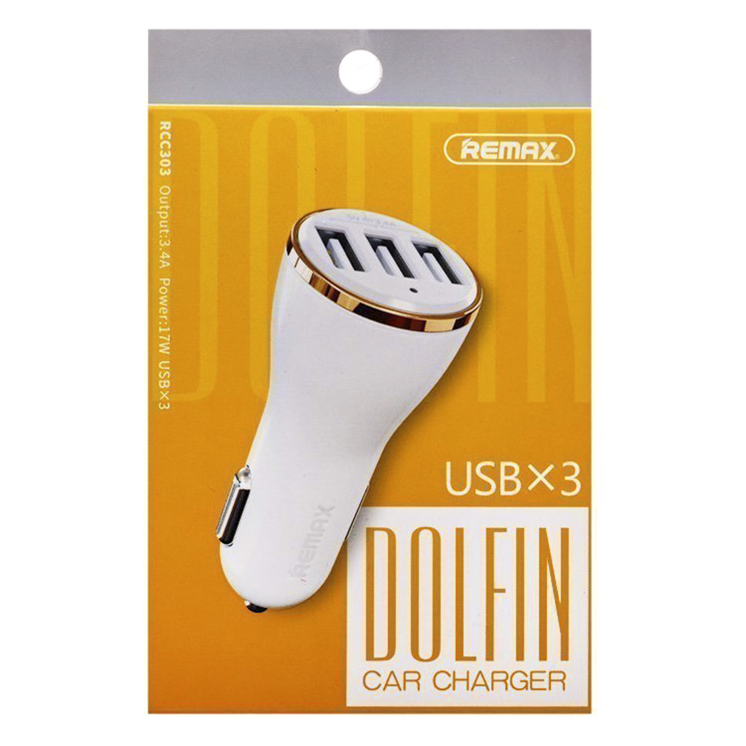 Адаптер Автомобильный Remax RCC303 3USB/5V/3.4A (white/gold)