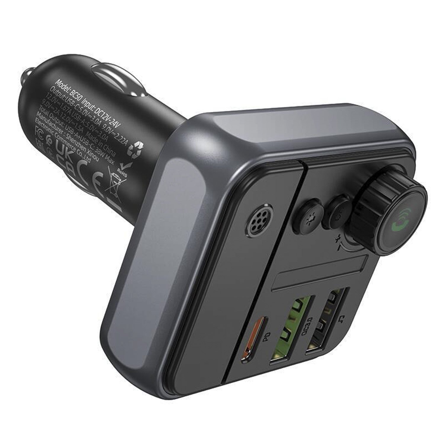 Автомобильный FM-трансмиттер Borofone BC50 Ascenso PD20W+QC3.0 (black)