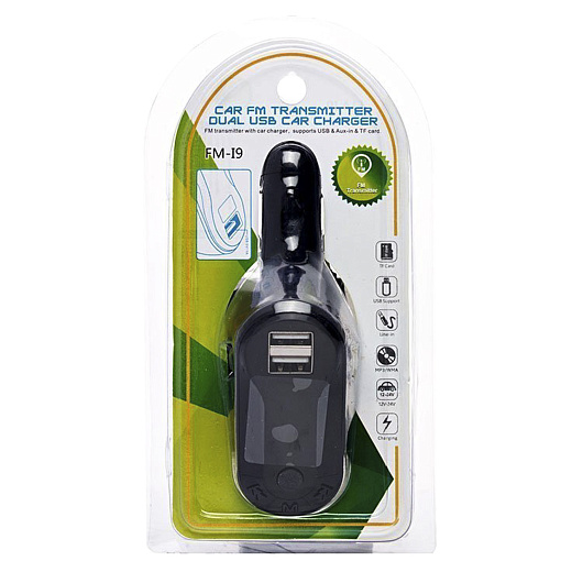 Автомобильный FM-трансмиттер - FM-I9 2USB, mini jack 3,5 мм (black)