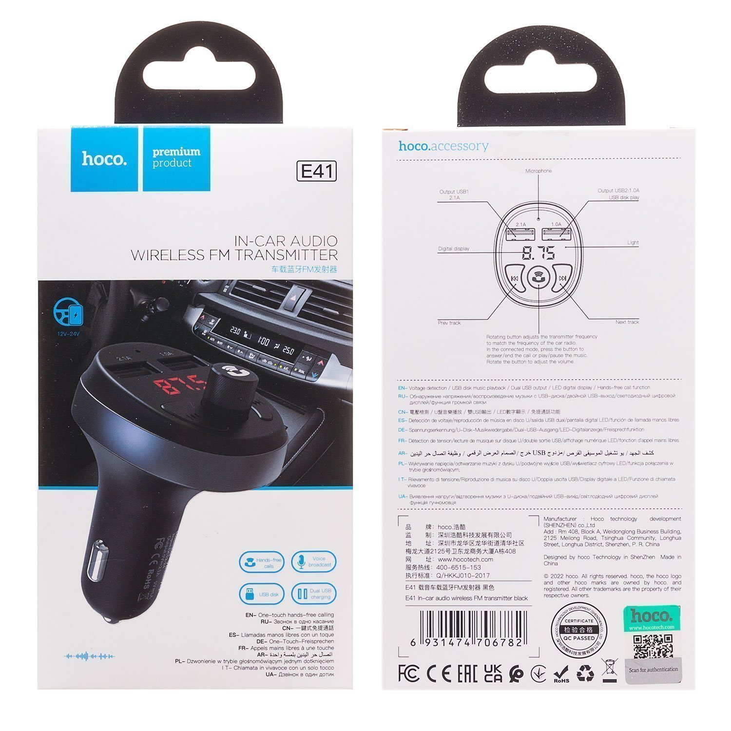 Автомобильный FM-трансмиттер Hoco E41 (black)