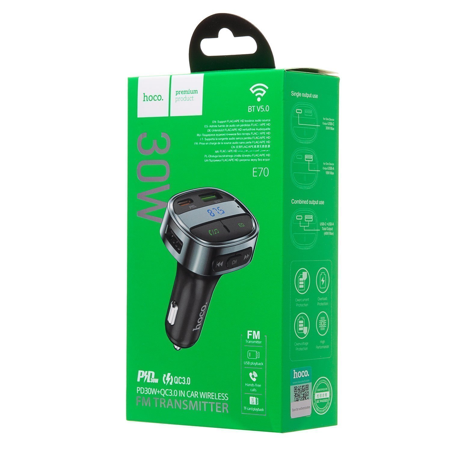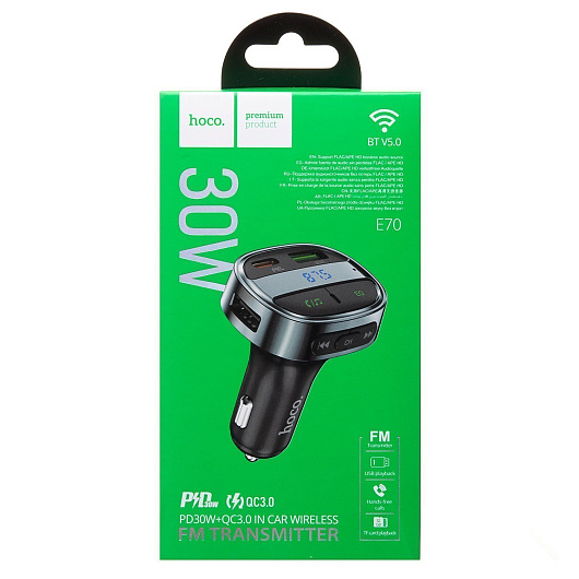 Автомобильный FM-трансмиттер Hoco E70 BT PD QC 30W (black)