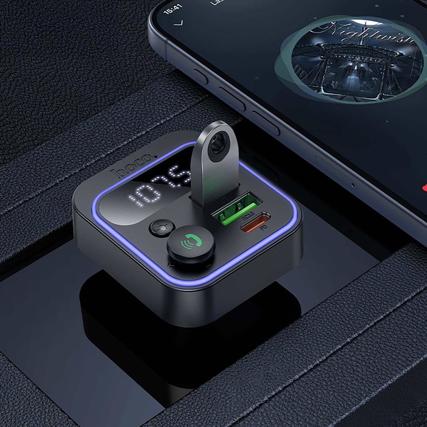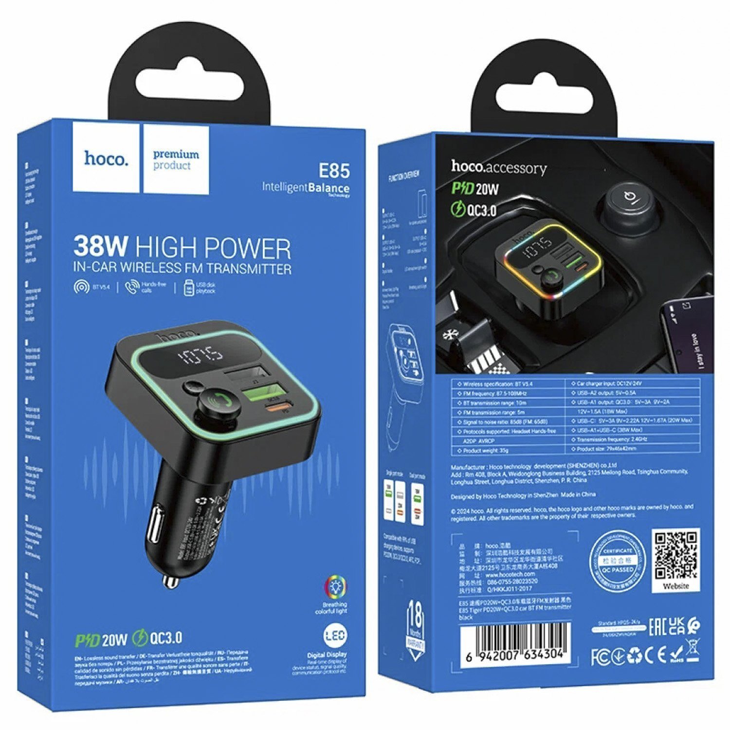 Автомобильный FM-трансмиттер Hoco E85 Tiger PD20W+QC3.0 (black)