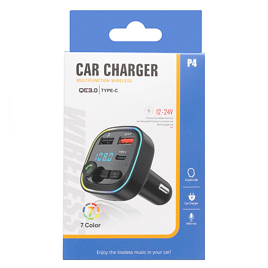 Автомобильный FM-трансмиттер - P4 2USB/Type-C (black)