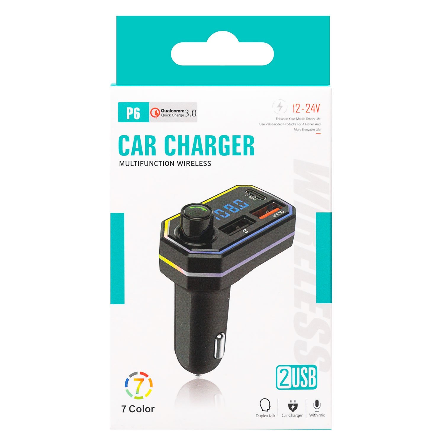 Автомобильный FM-трансмиттер - P6 2USB/Type-C (black)