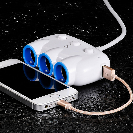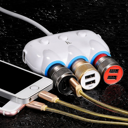 Автомобильный разветвитель прикуривателя Hoco C1 3in1 2USB (white)