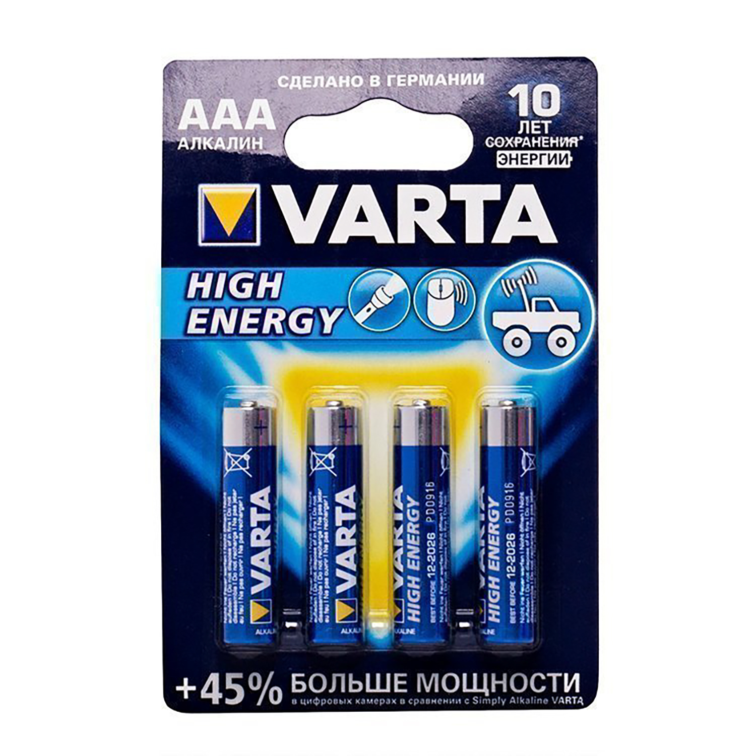 Батарейка AAA Varta LR03 HIGH ENERGY (4-BL) (40/200) ..