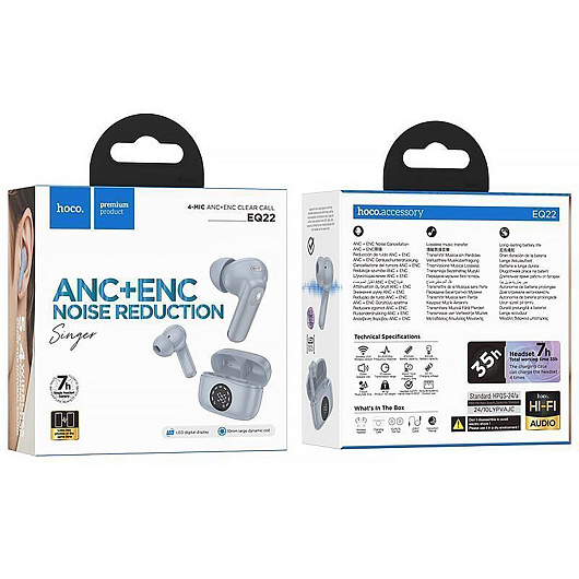 Беспроводные Bluetooth-наушники Hoco TWS EQ22 ANC+ENC (blue)