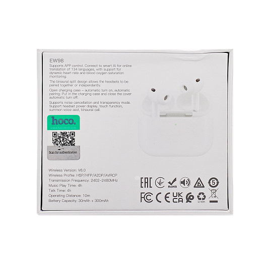 Беспроводные Bluetooth-наушники Hoco TWS EW98 ANC+AI Translation+Heart Rate (white)