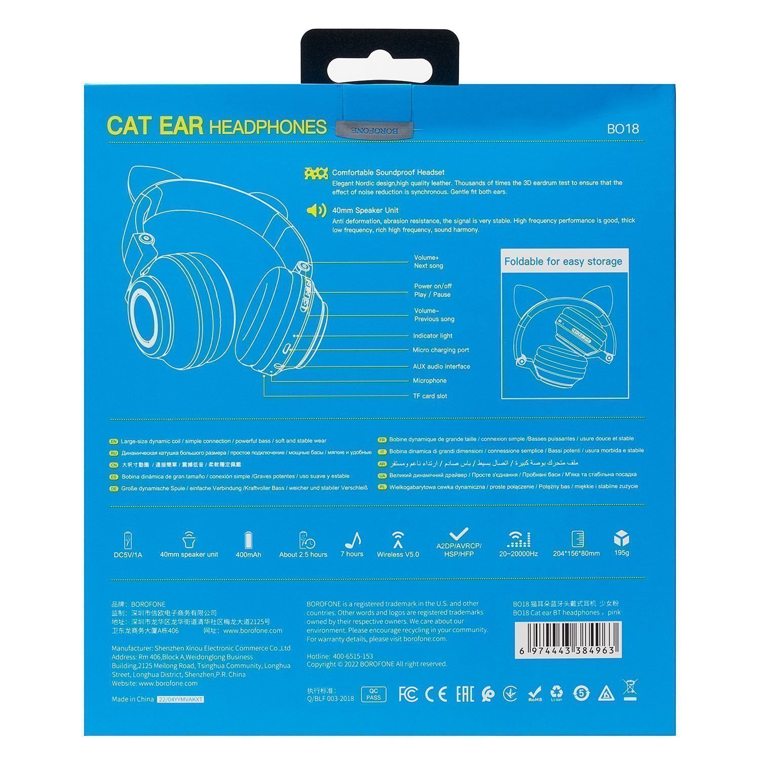 Bluetooth-наушники полноразмерные Borofone BO18 cat ear (black)