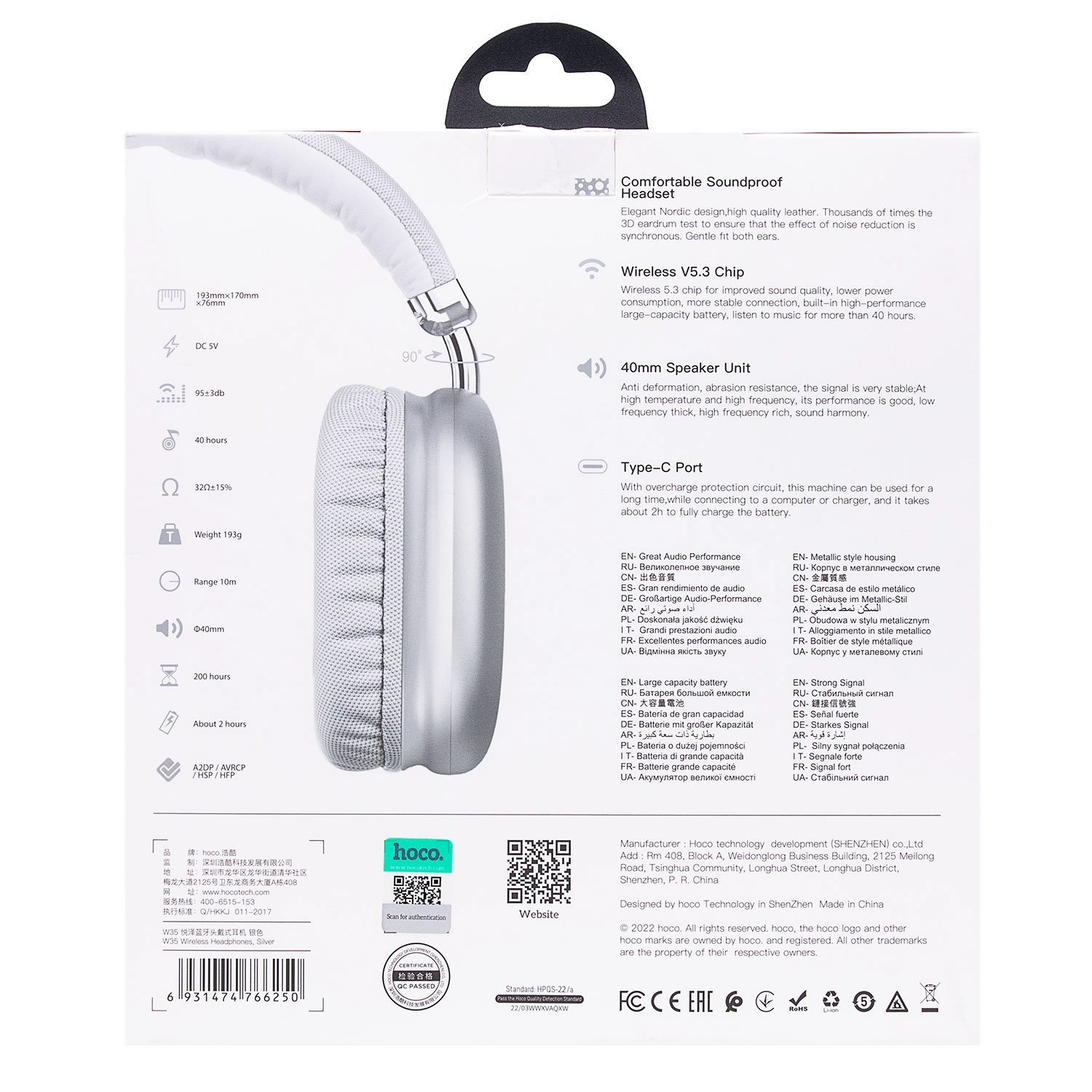 Bluetooth-наушники полноразмерные Hoco W35 (повр. уп.) (silver)