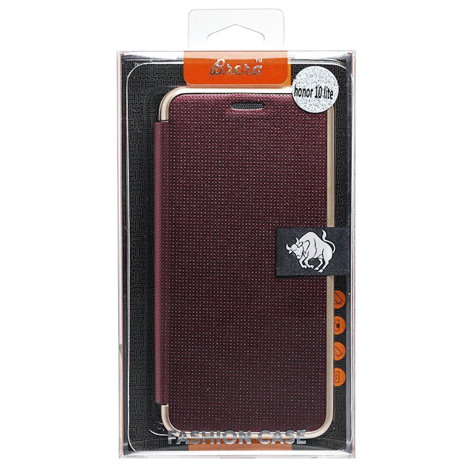 Чехол-книжка Brera Like Me для "Huawei Honor 10 Lite/P Smart 2019" (red/gold) откр.вбок ..