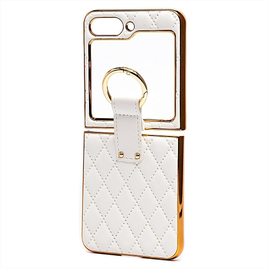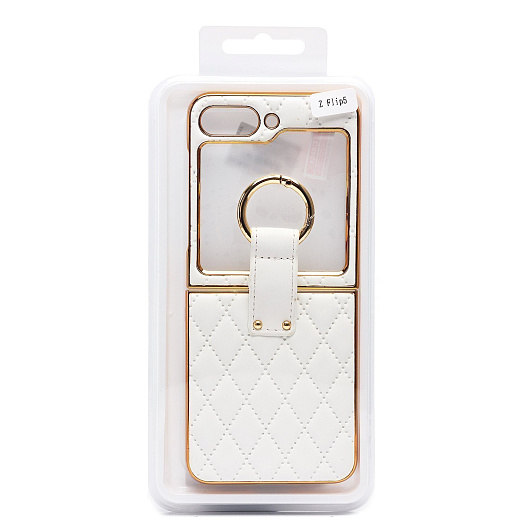 Чехол-накладка - FLIP экокожа стеганая с кольцом для "Samsung Galaxy Flip 5" (white)
