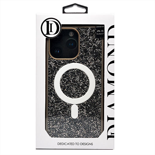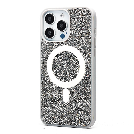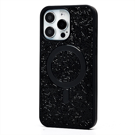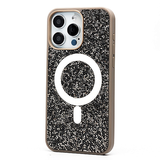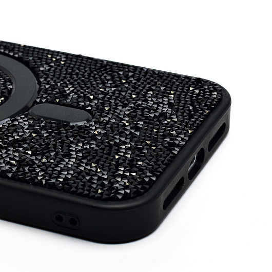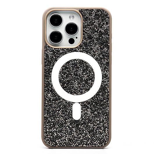 Чехол-накладка - SM029 POSH SHINE SafeMag для "Apple iPhone 15 Pro Max" россыпь кристаллов (black titanium)