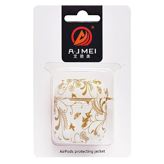 Чехол - SCP16 для кейса "Apple AirPods" (white/dark gold) (011)