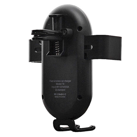 Держатель автомобильный - гравитационный+беспроводная зарядка T8 в дефлектор (black)