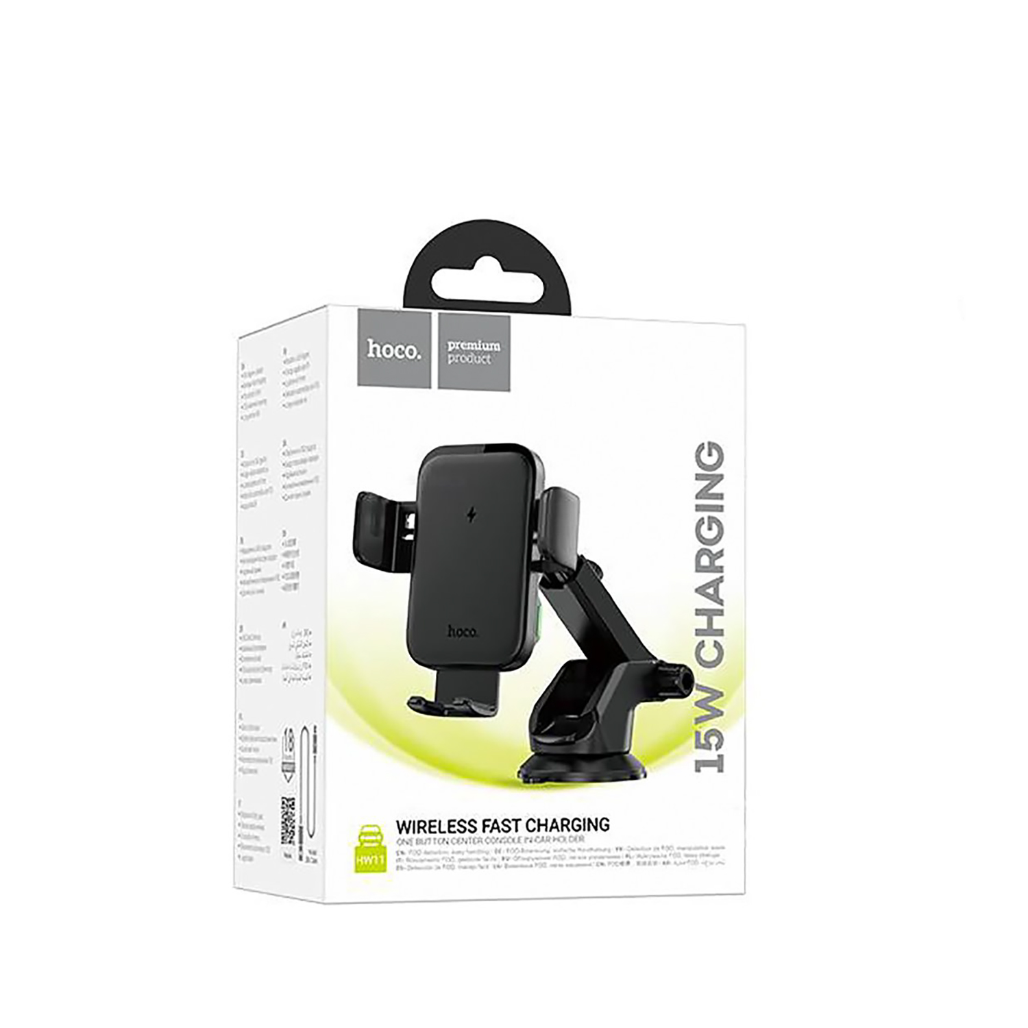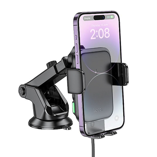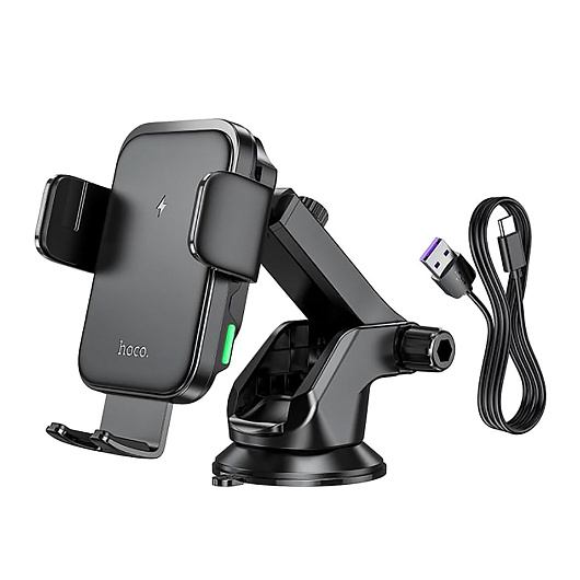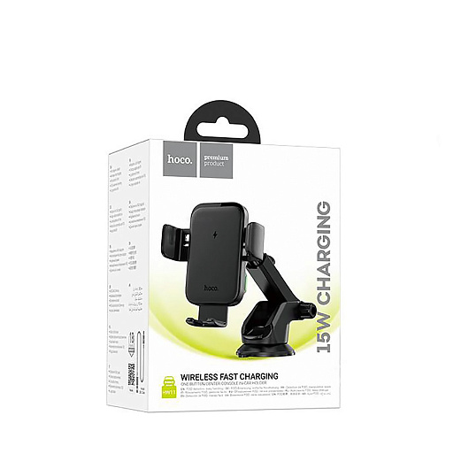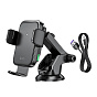 Держатель автомобильный Hoco гравитационный+беспроводная зарядка HW11 лобовое стекло, приборная панель (black)