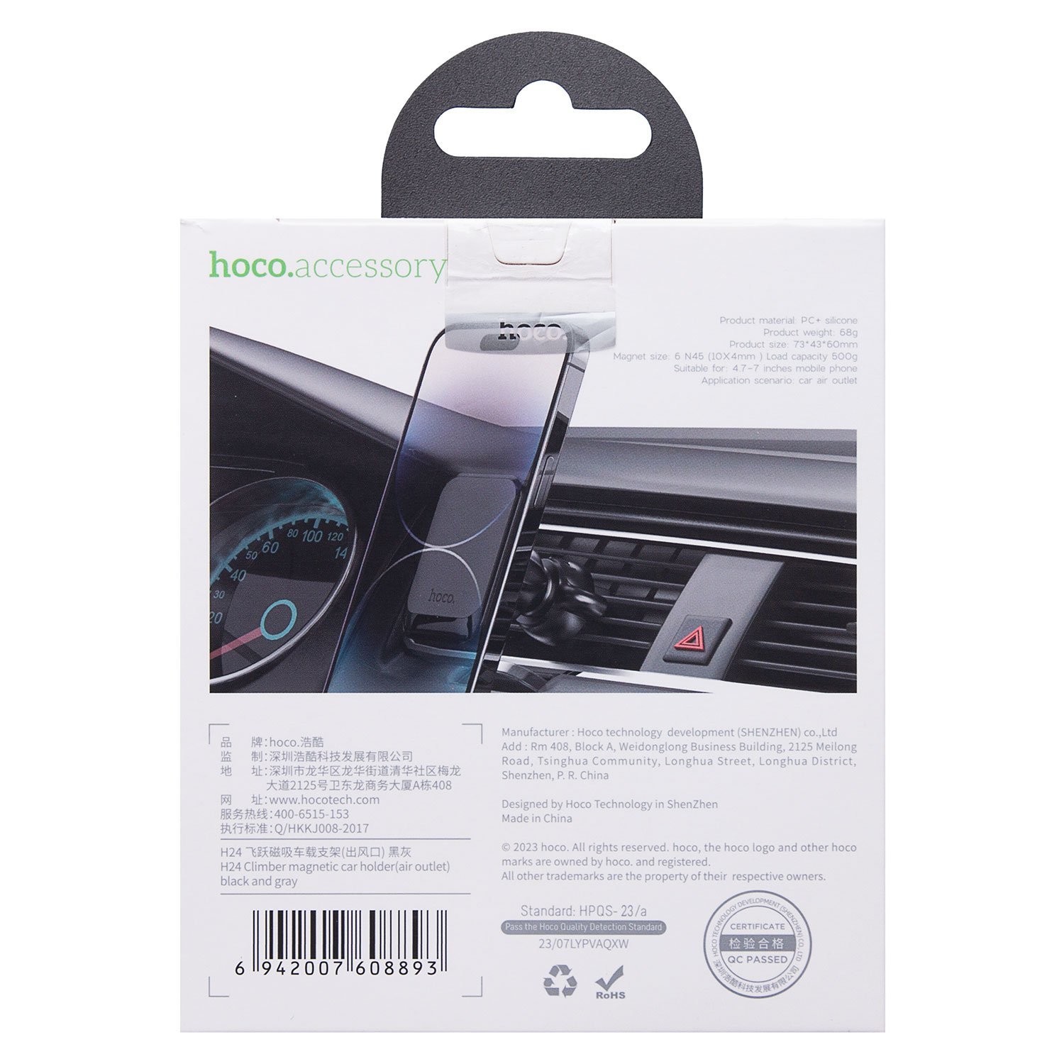 Держатель автомобильный Hoco магнитный H24 Climber в дефлектор (gray)