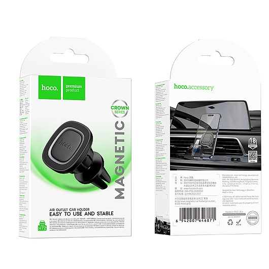 Держатель автомобильный Hoco магнитный H72 Crown в дефлектор (black metal gray)