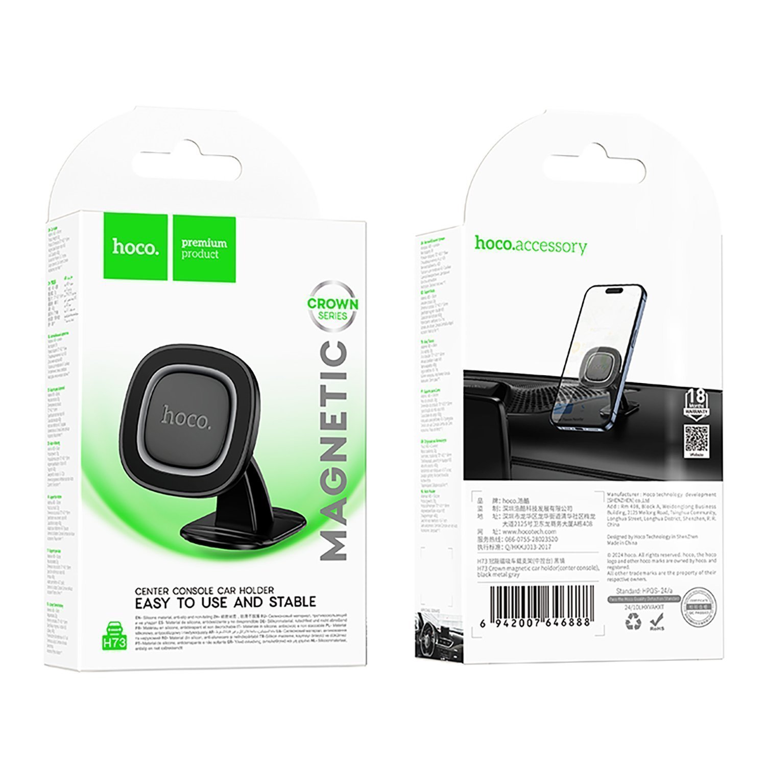 Держатель автомобильный Hoco магнитный H73 Crown на приборную панель (black metal gray)