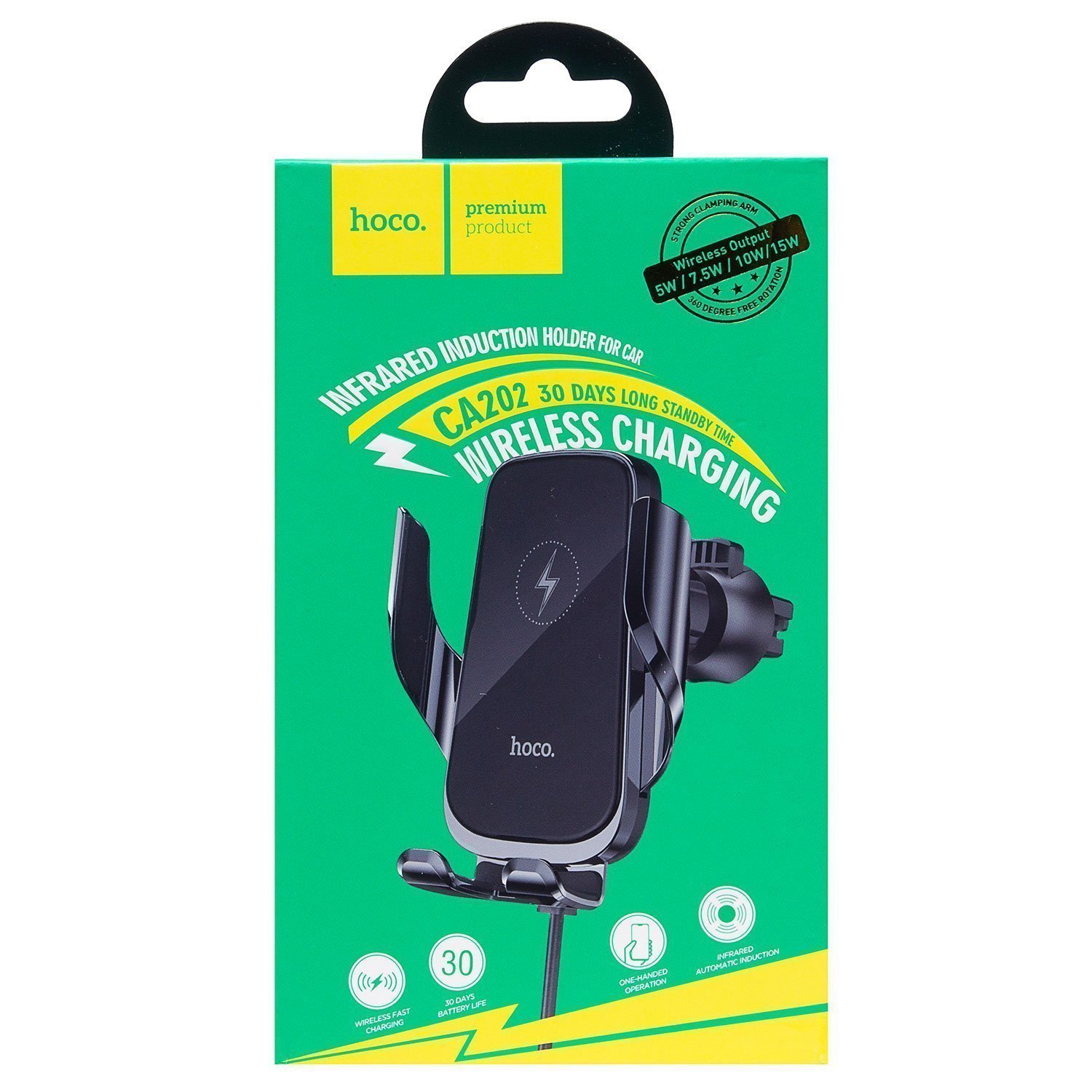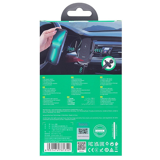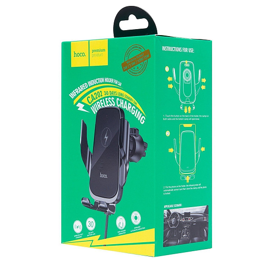 Держатель автомобильный Hoco зажим+беспроводная зарядка CA202 в дефлектор (black)