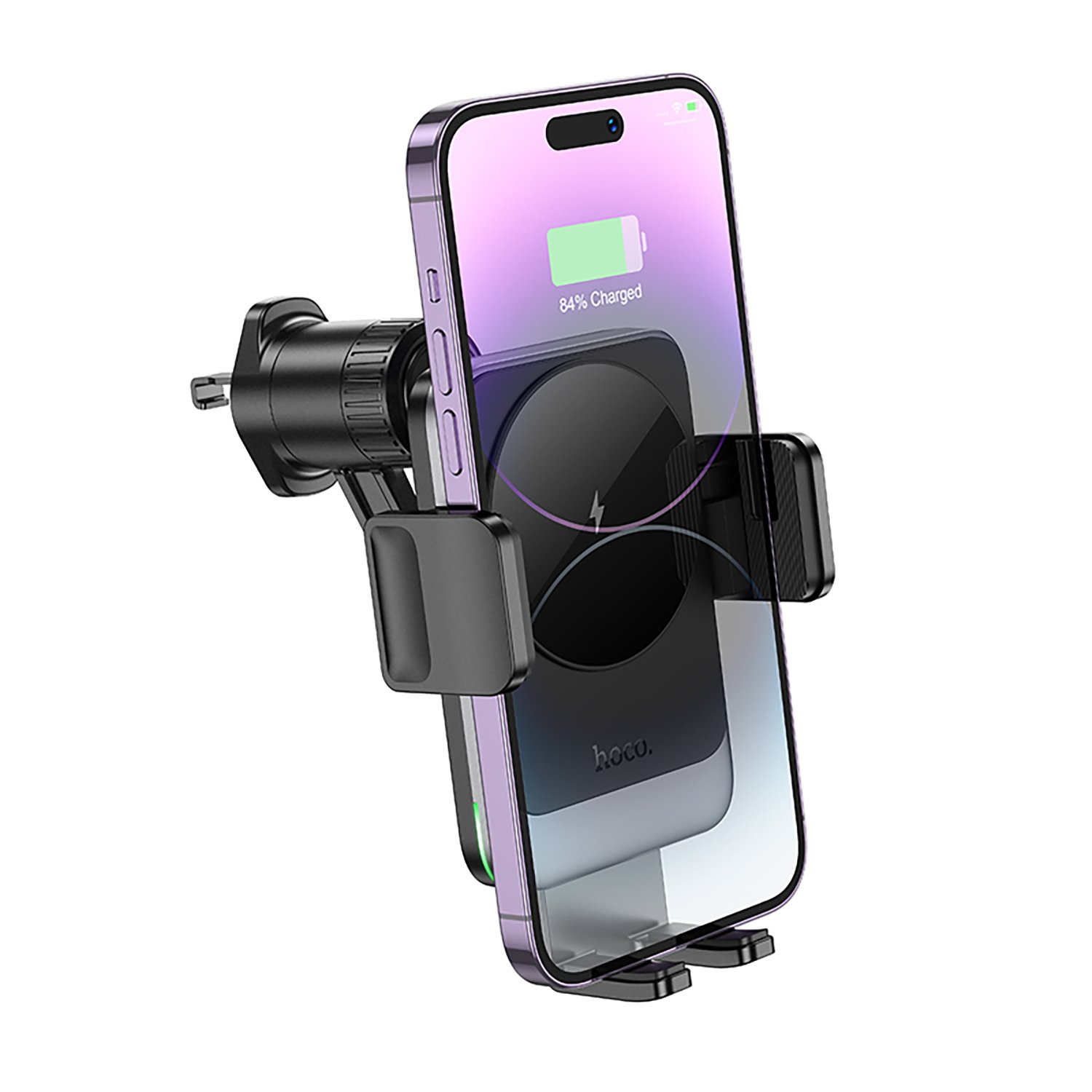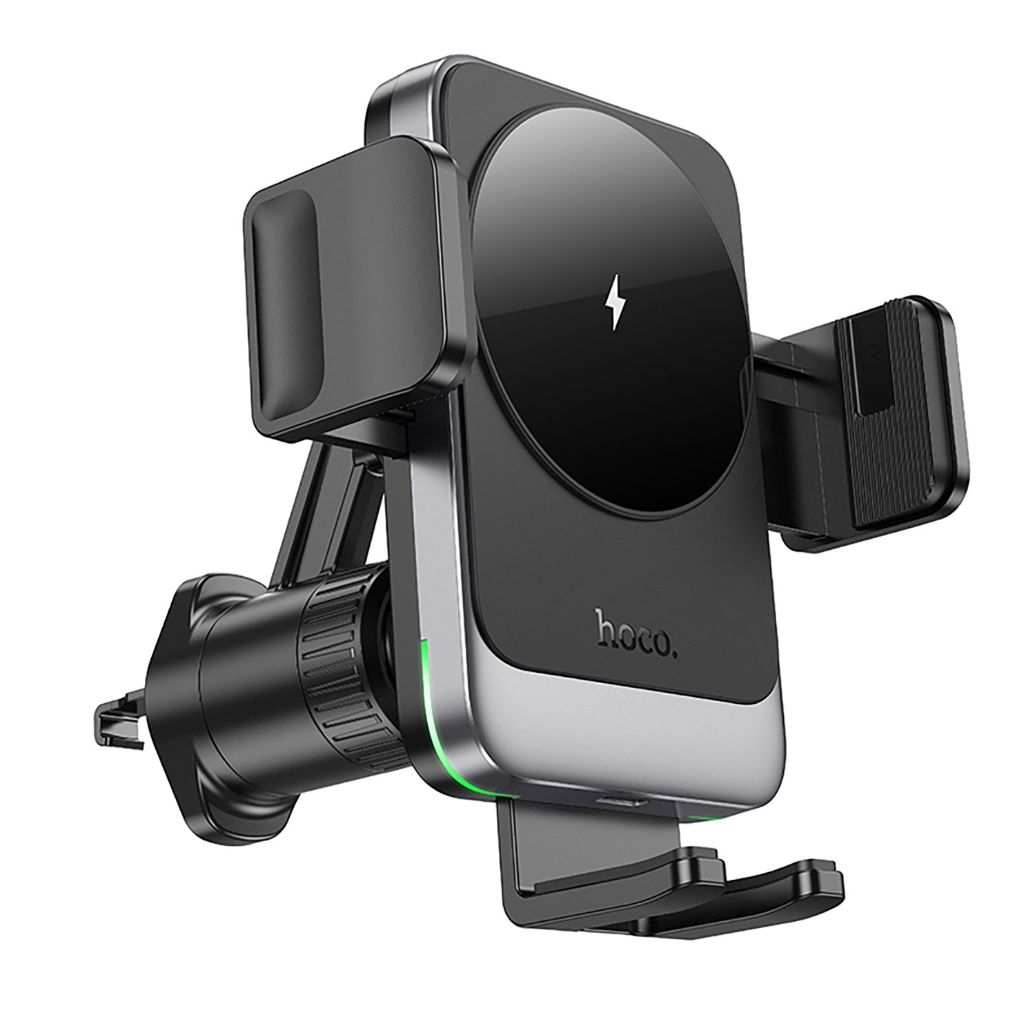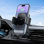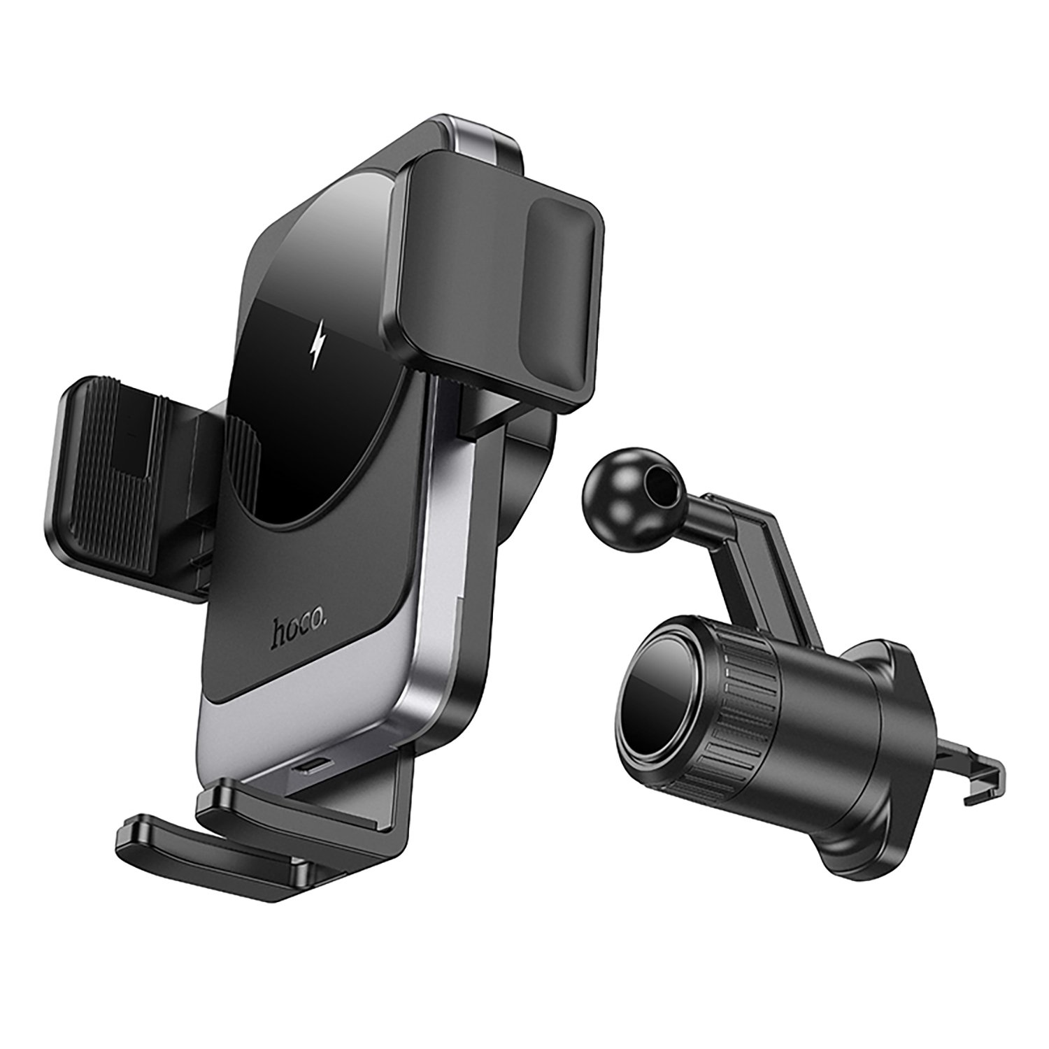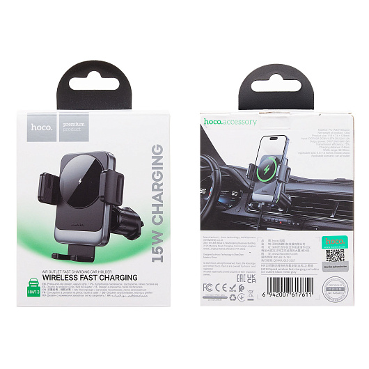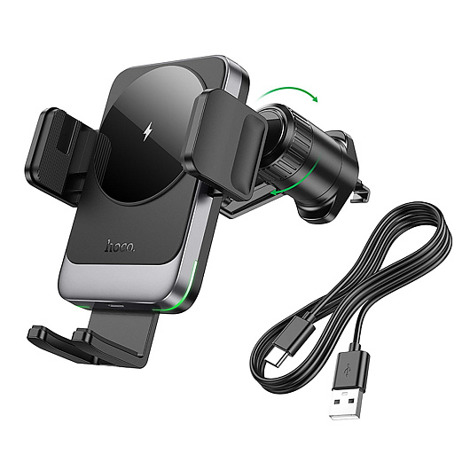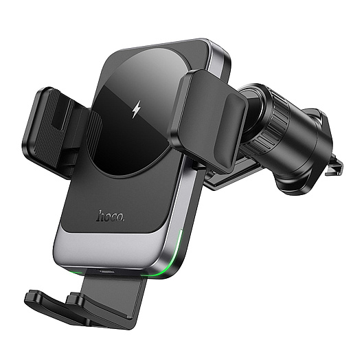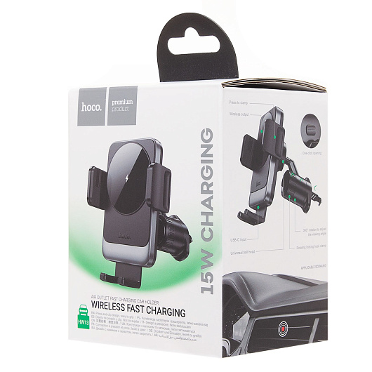 Держатель автомобильный Hoco зажим+беспроводная зарядка HW13 в дефлектор 15W (black metal gray)