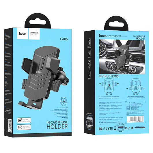 Держатель автомобильный Hoco зажим CA86 Davy в дефлектор (black)