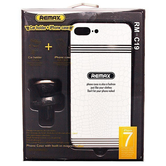 Держатель автомобильный Remax магнитный RM-C19 + Case iPhone 7 Plus в дефлектор (white)