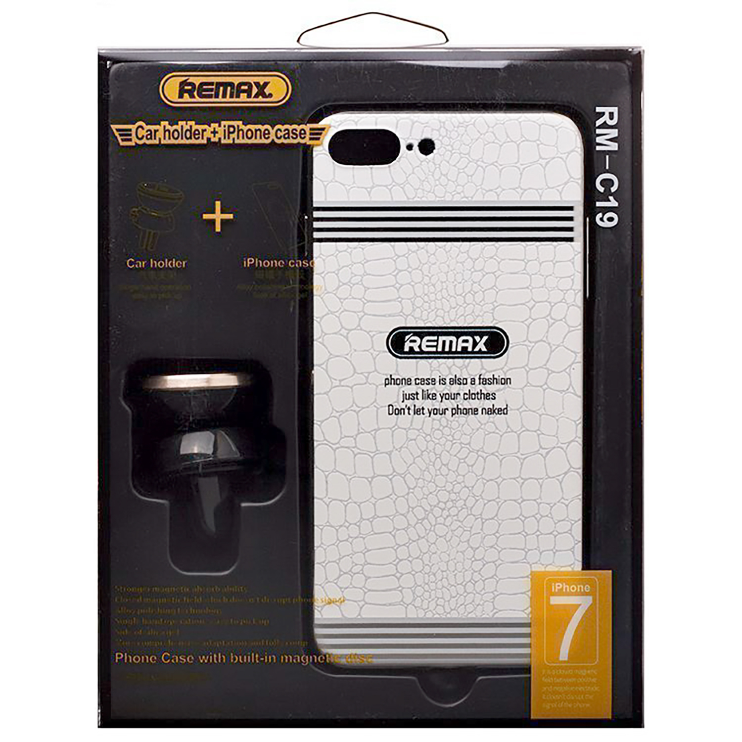 Держатель автомобильный Remax магнитный RM-C19 + Case iPhone 7 в дефлектор (white)