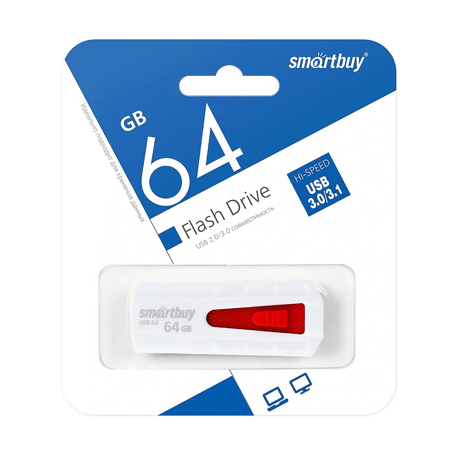 Флэш накопитель USB 64 Гб Smart Buy IRON 3.0 (white/red)