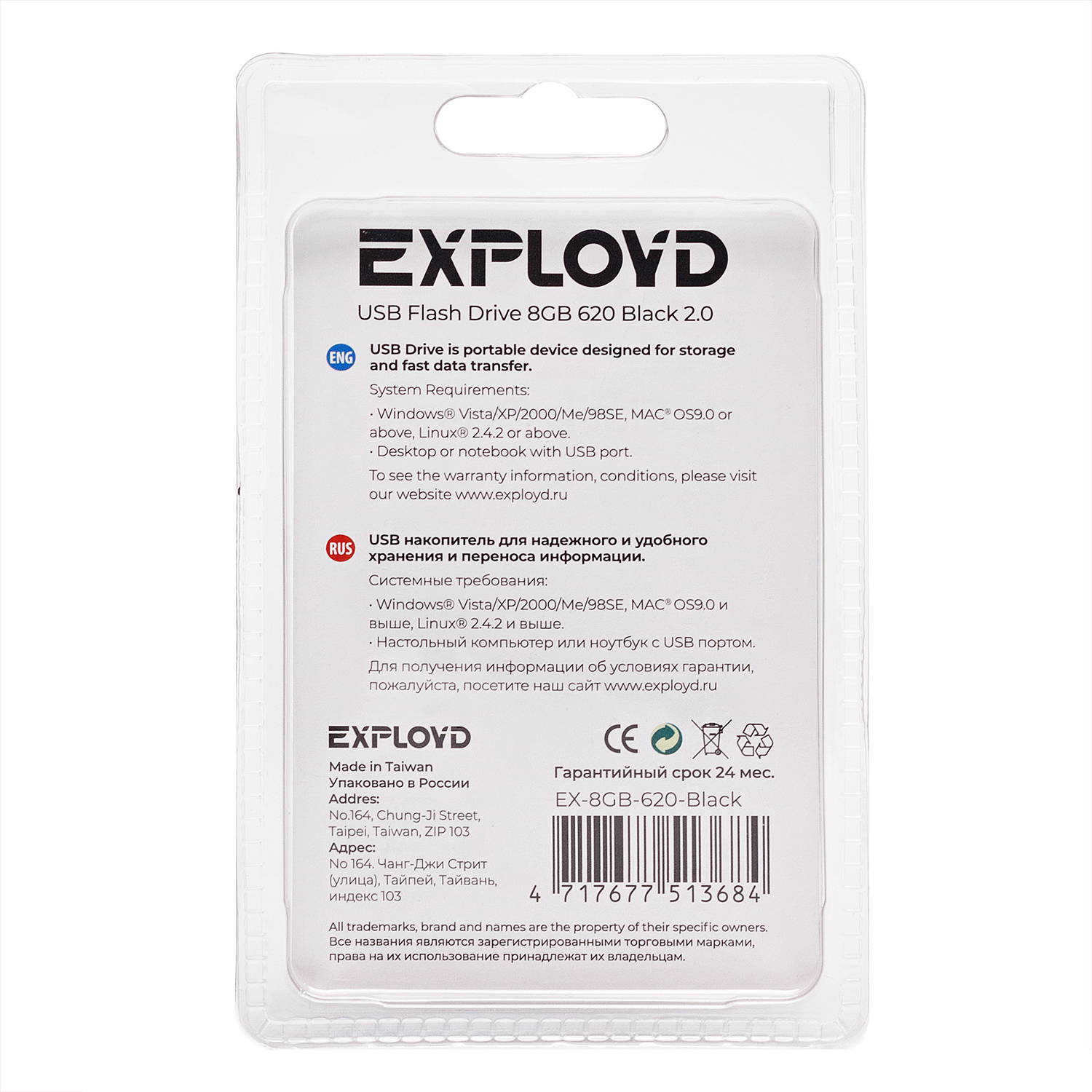 Флэш накопитель USB 8 Гб Exployd 620 (black)