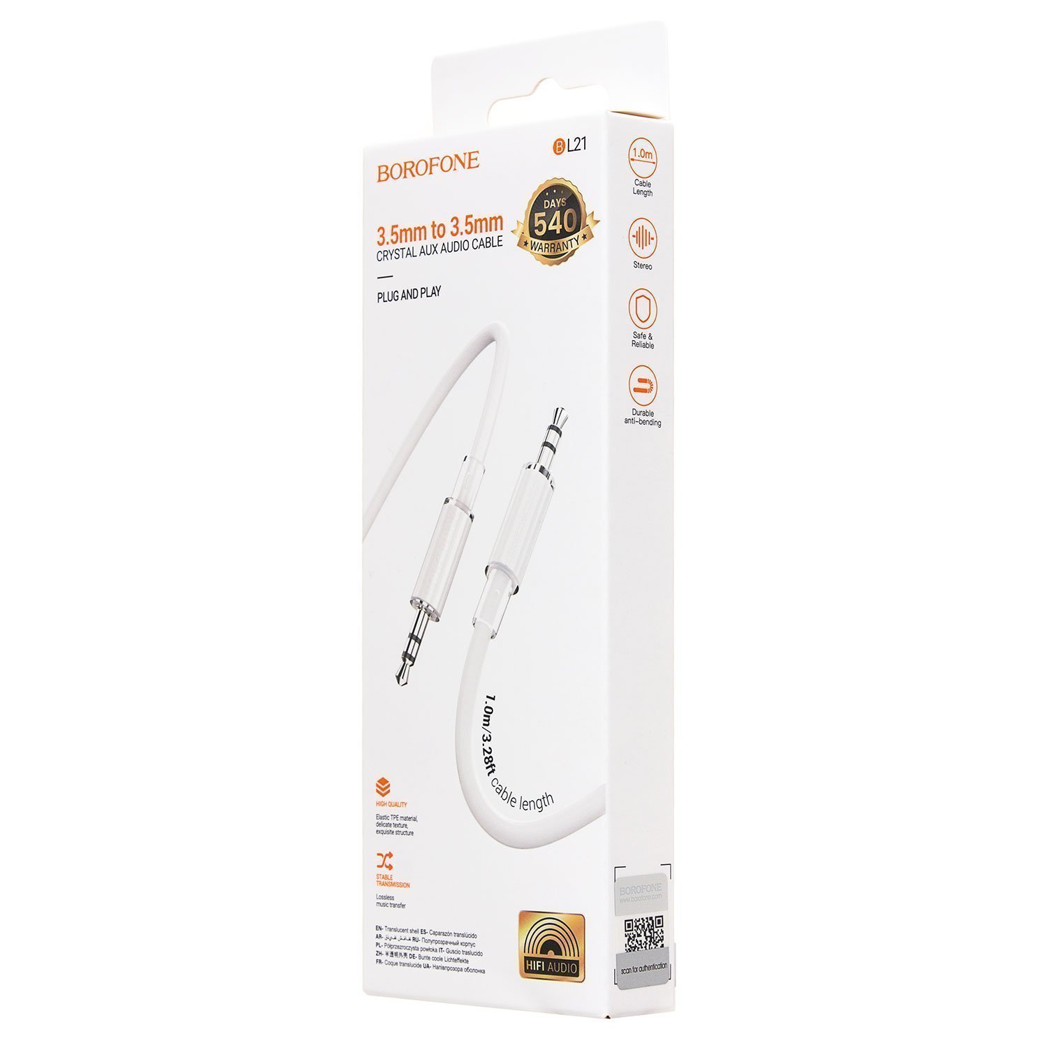Кабель AUX (папа-папа) Borofone BL21 Lemon 100см (white)