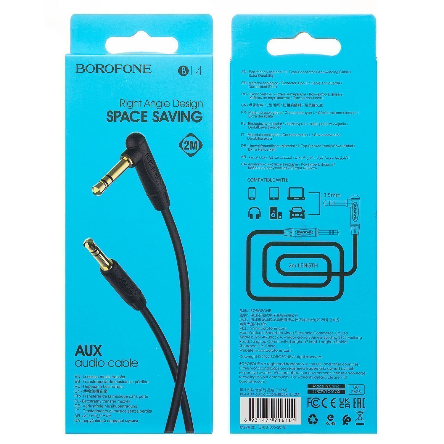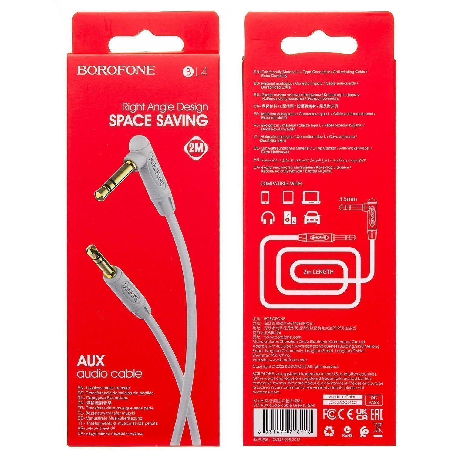 Кабель AUX (папа-папа) Borofone BL4 200см (gray)