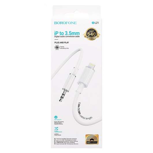 Кабель Lightning - 3.5mm Borofone BL21 Lemon 100см (white)