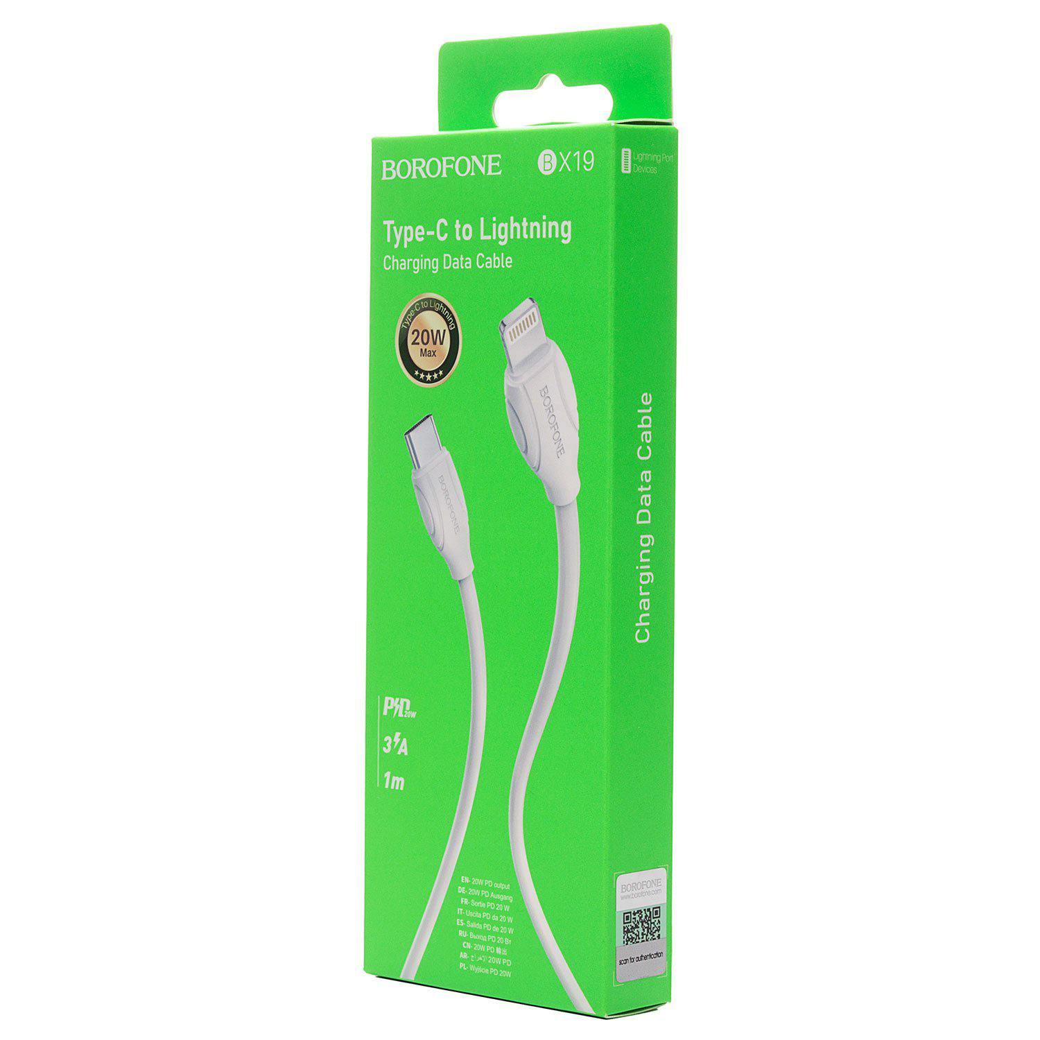 Кабель Type-C - Apple lightning Borofone BX19 15W 100см 3A (white)