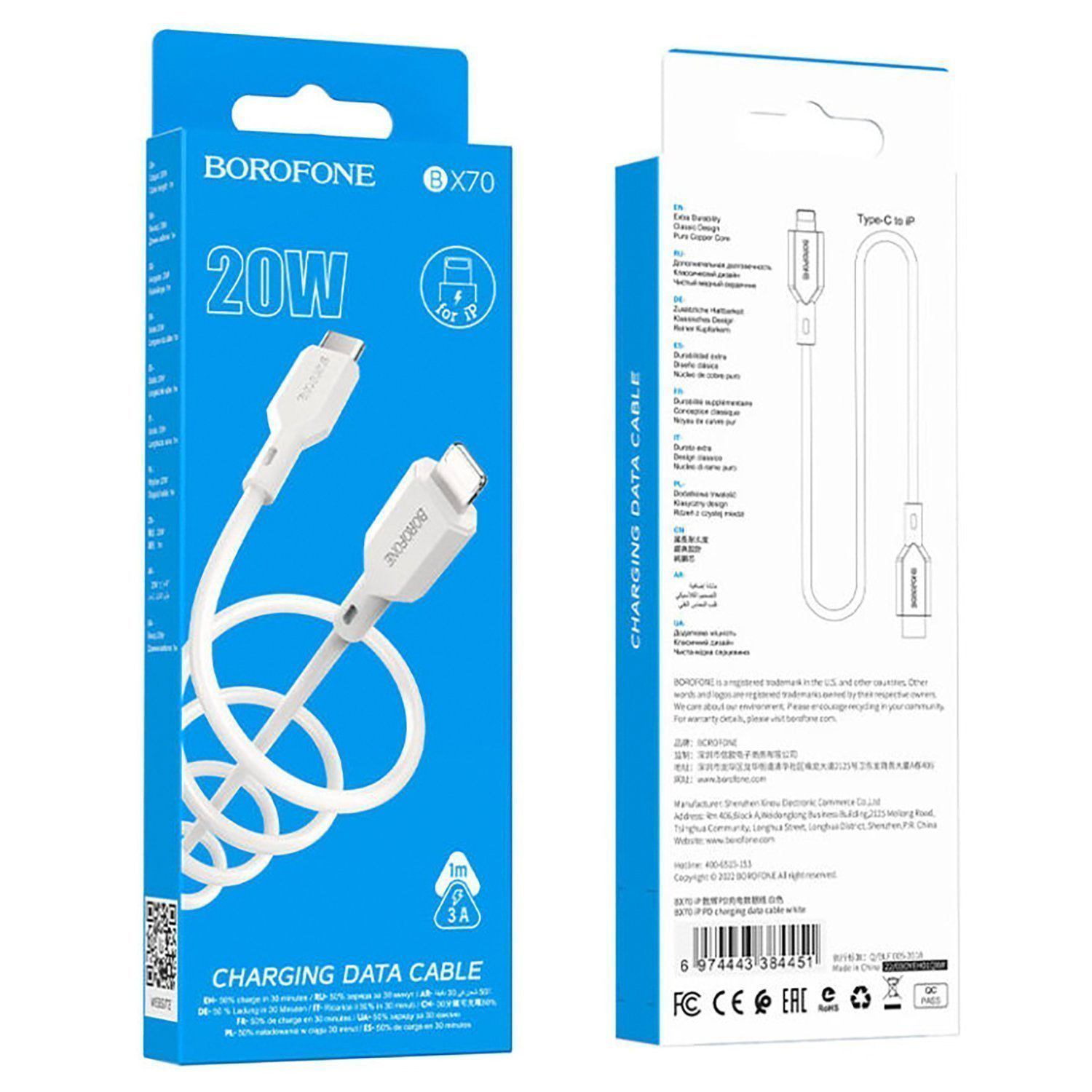 Кабель Type-C - Apple lightning Borofone BX70 15W 100см 3A (white)
