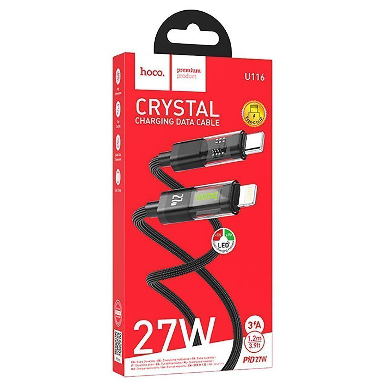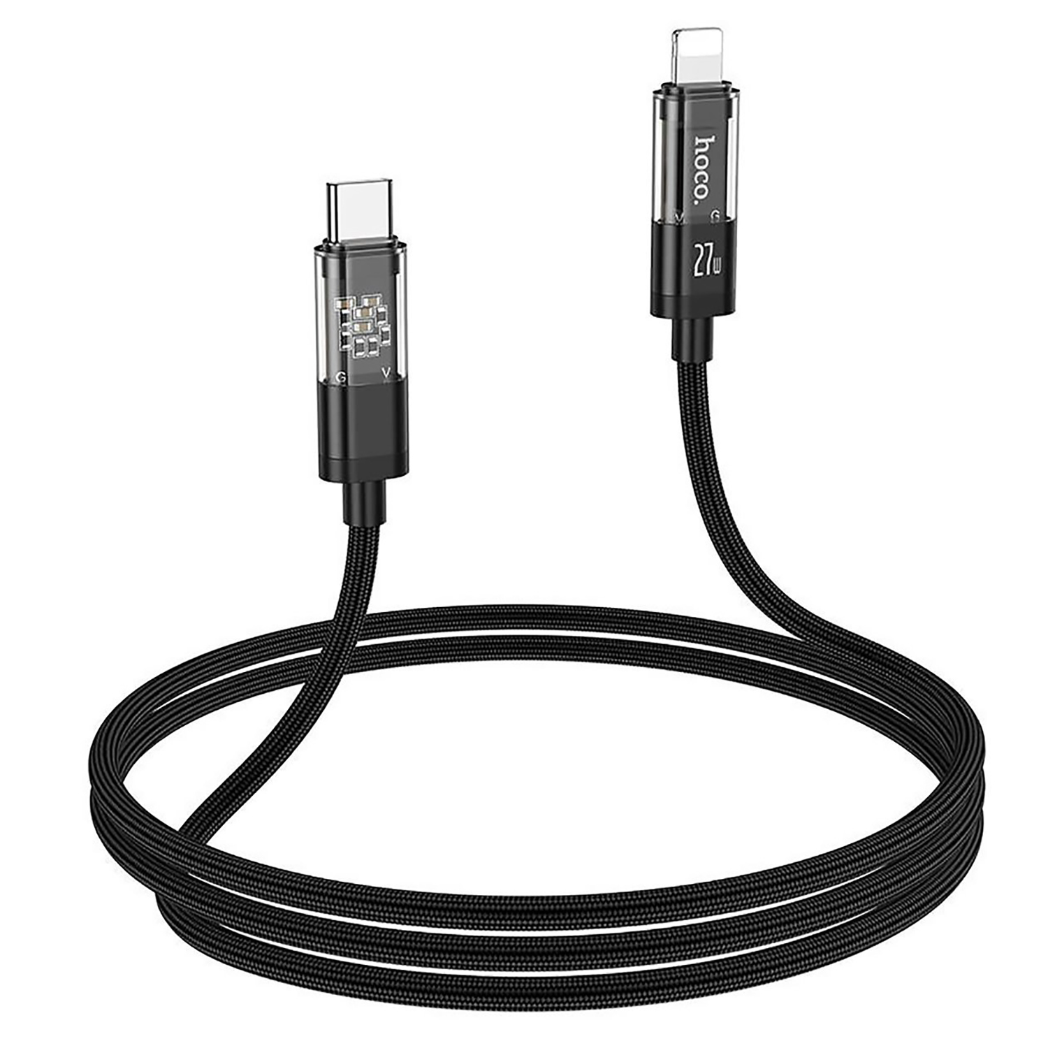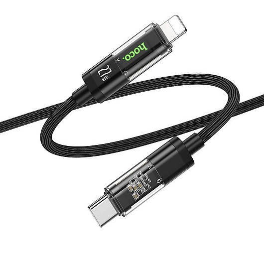Кабель Type-C - Apple lightning Hoco U116 Transparent PD 27W 120см 3A (black)