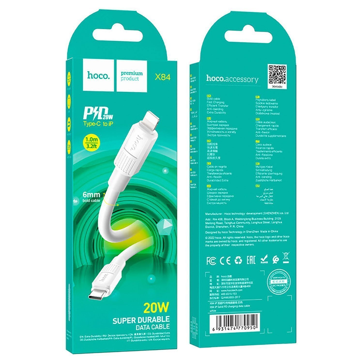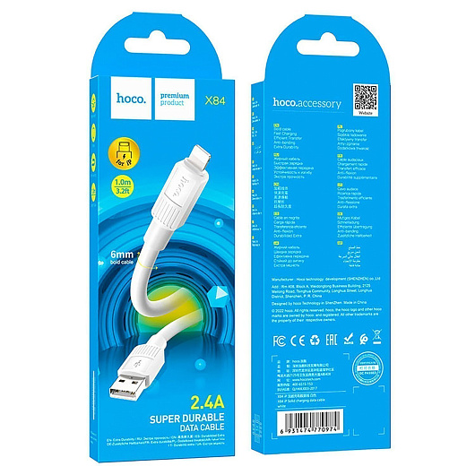 Кабель Type-C - Apple lightning Hoco X84 Solid PD 20W 100см 3A (white)