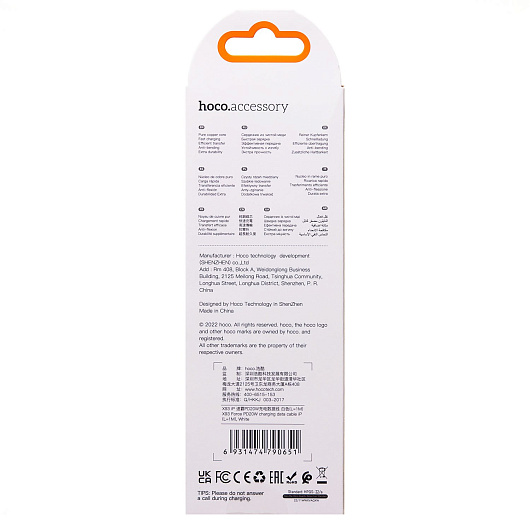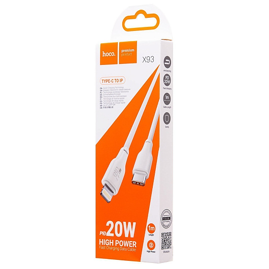 Кабель Type-C - Apple lightning Hoco X93 Force PD 20W 100см 3A (white)