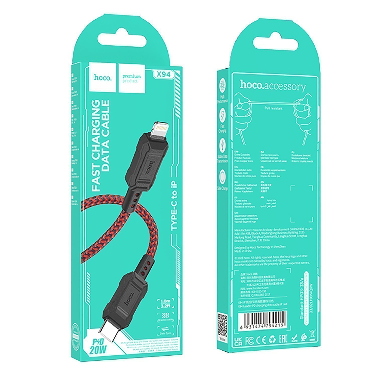 Кабель Type-C - Apple lightning Hoco X94 Leader PD 20W 100см 3A (red)
