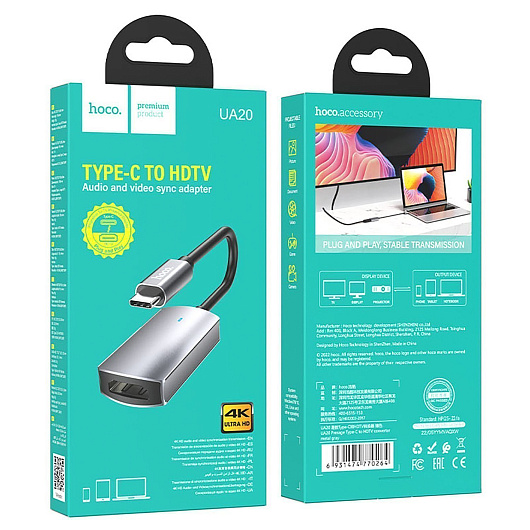 Кабель Type-C - HDMI Hoco UA20 13,4см (metal gray)