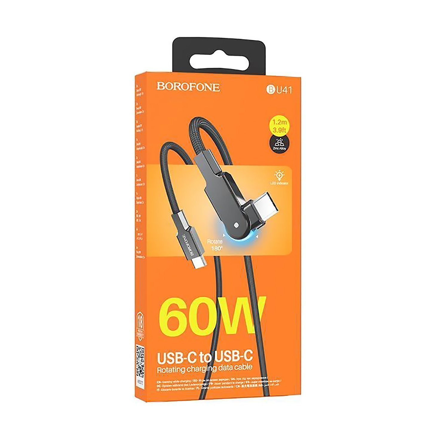 Кабель Type-C - Type-C Borofone BU41 Kelly 60W 120см 3A (black)