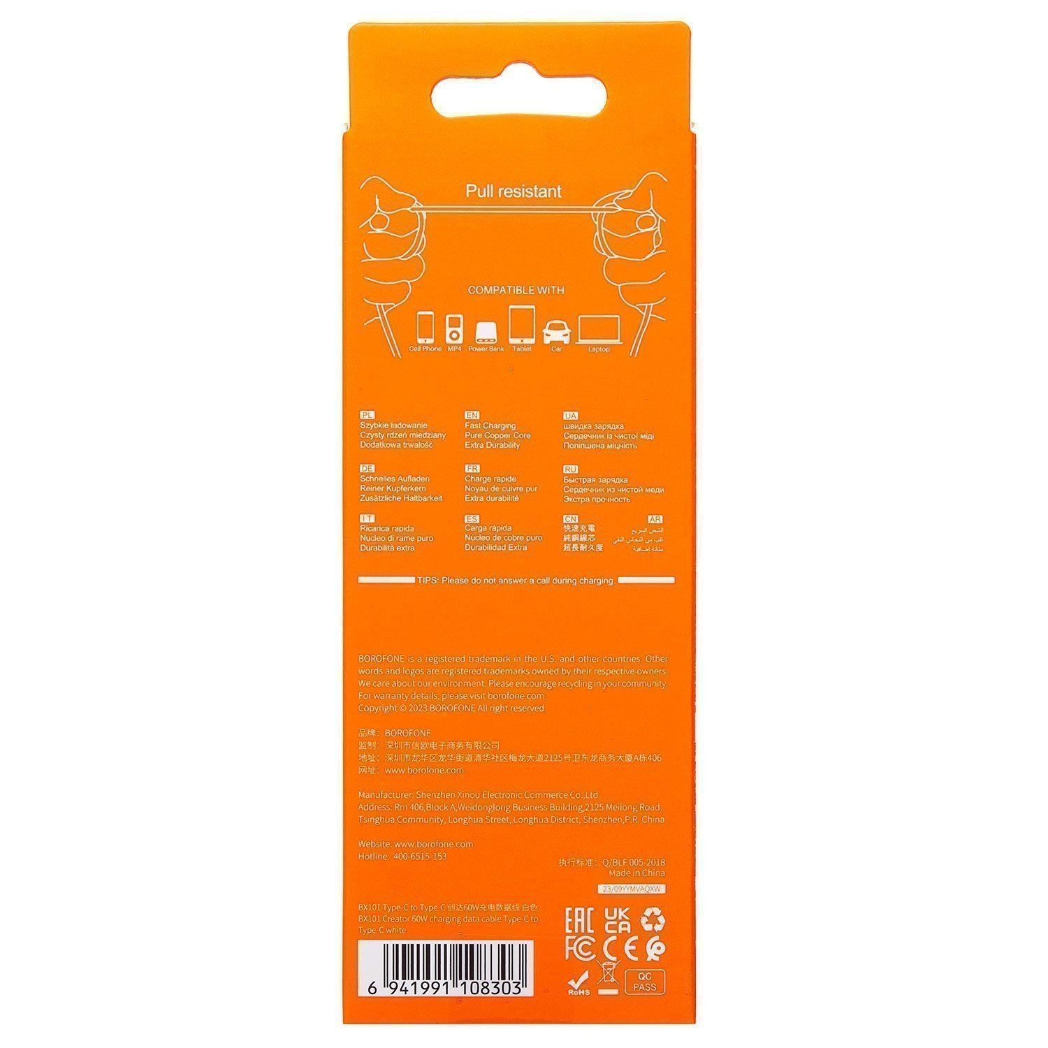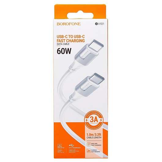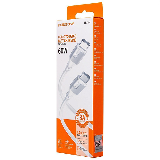 Кабель Type-C - Type-C Borofone BX101 Creator PD 60W 100см 3A (white)