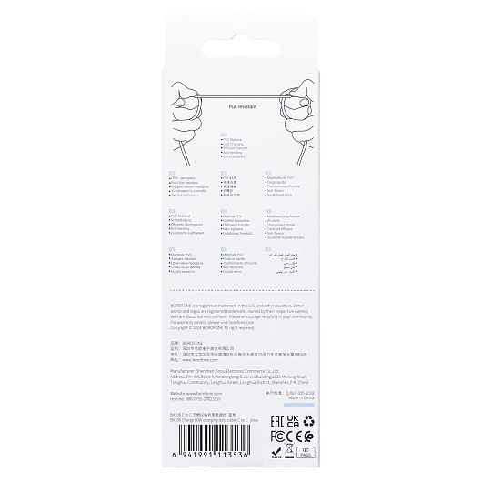 Кабель Type-C - Type-C Borofone BX106 PD 60W 100см 3A (white)