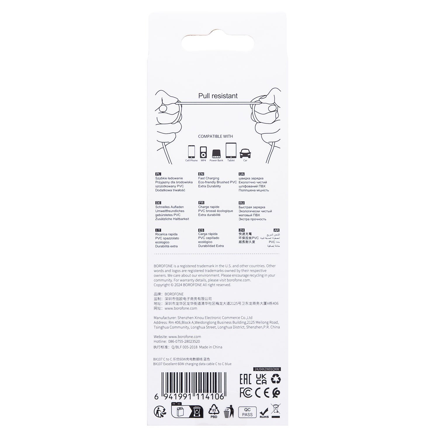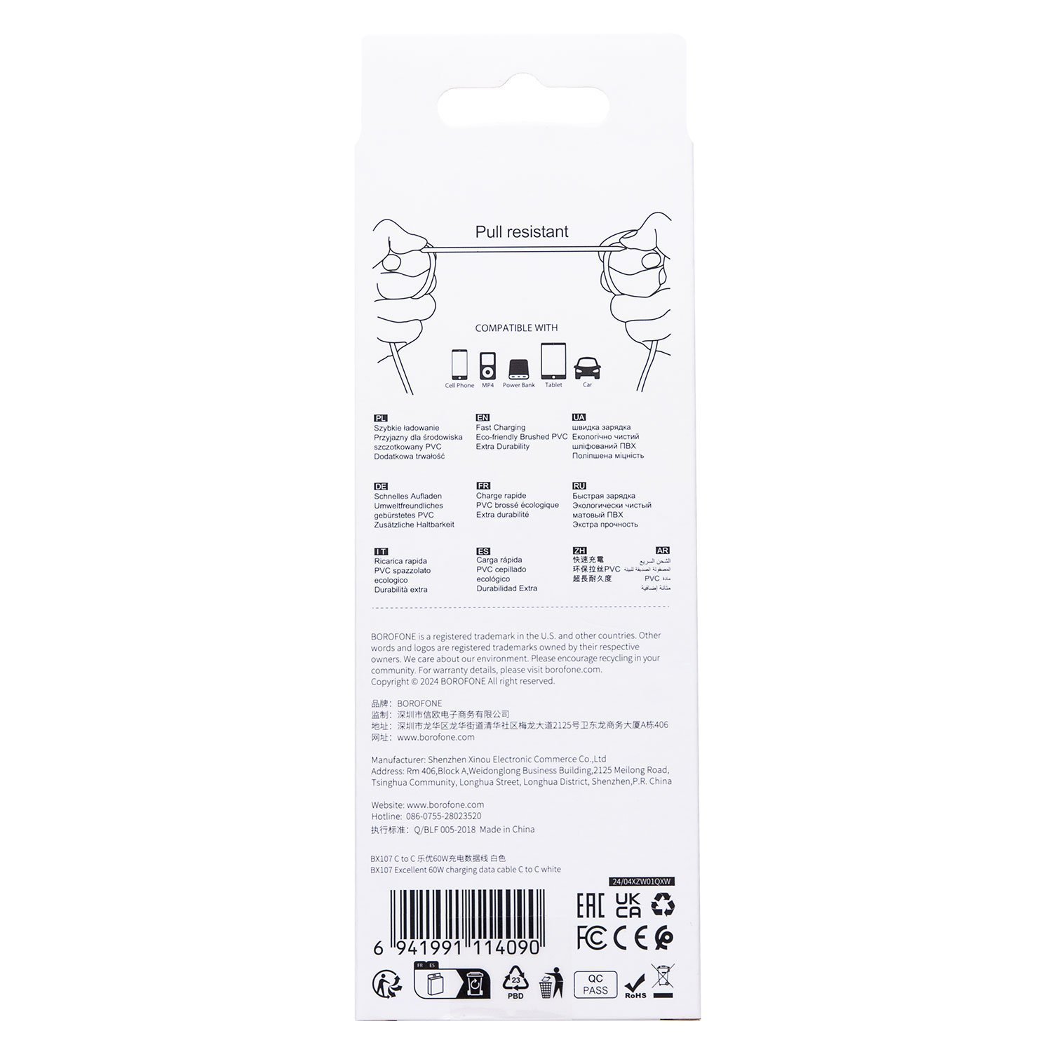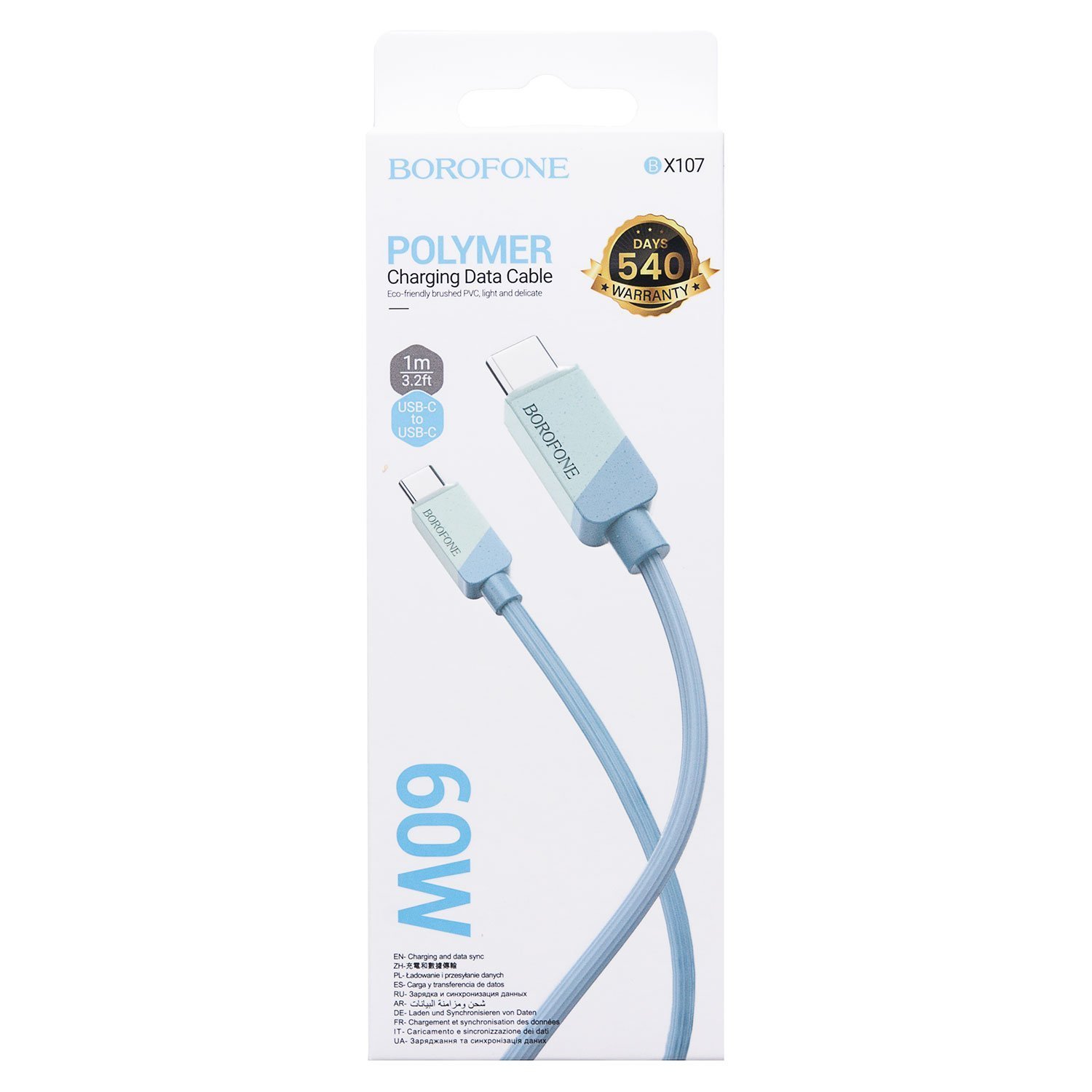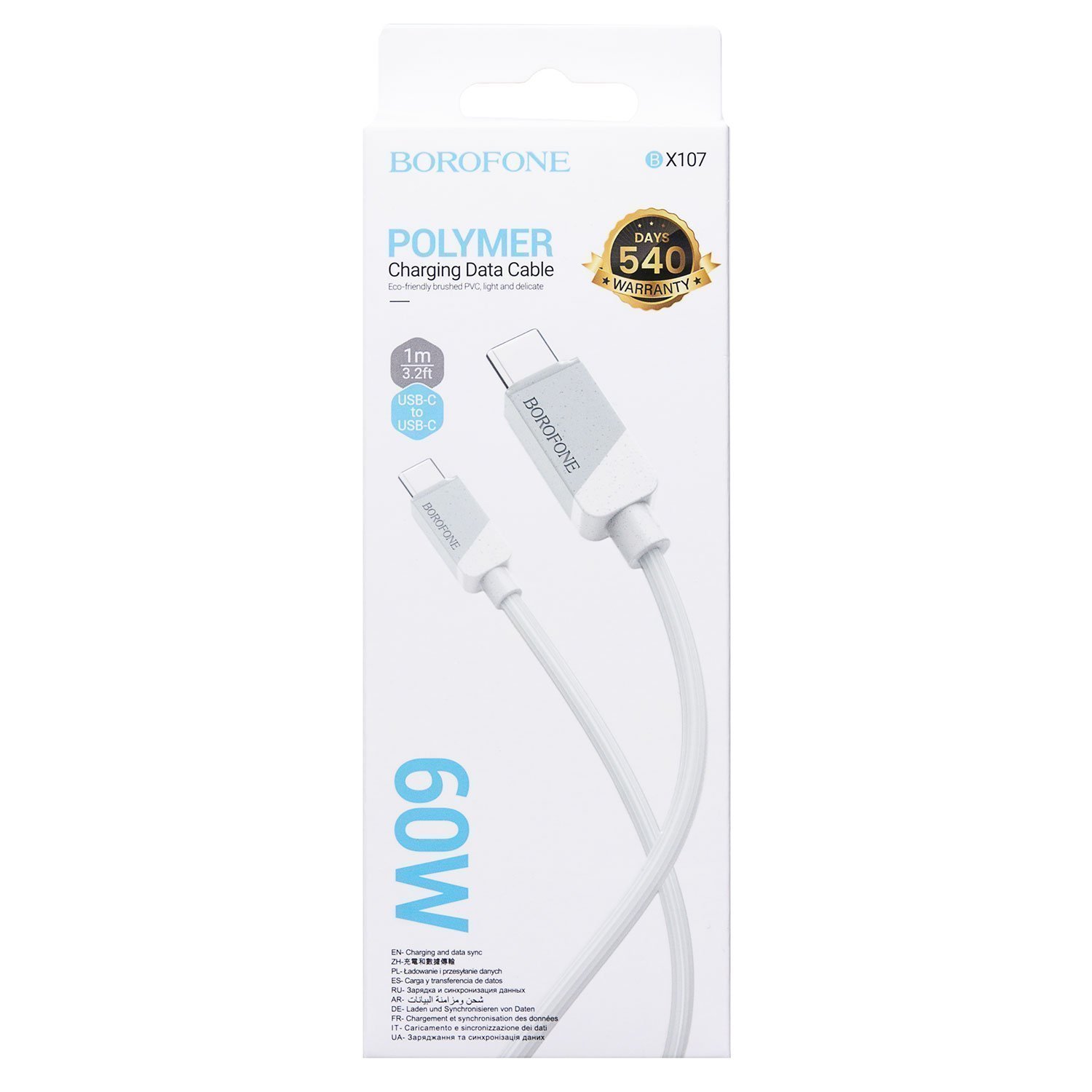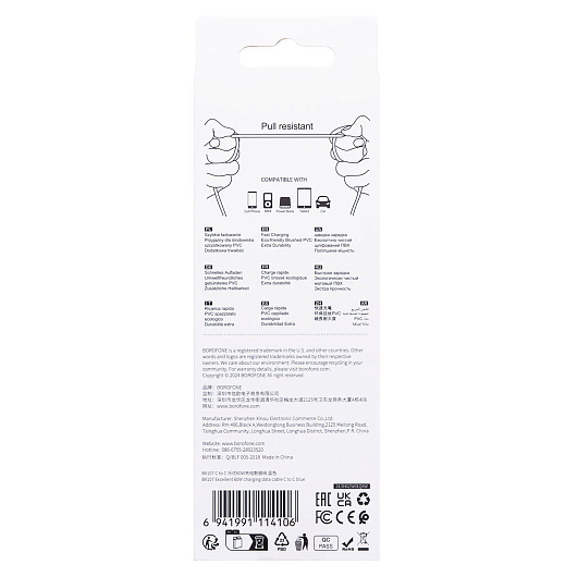 Кабель Type-C - Type-C Borofone BX107 PD 60W 100см 3A (white)