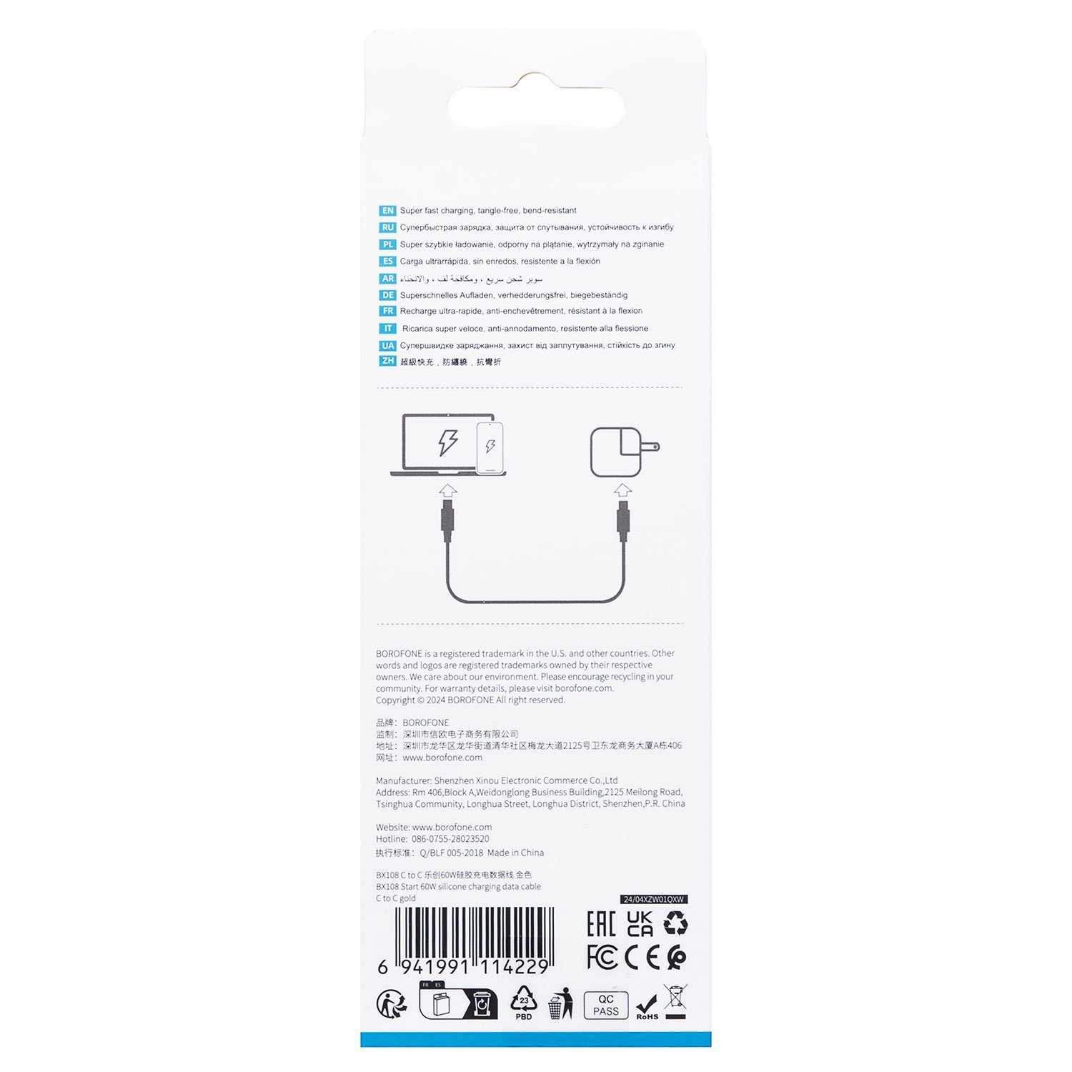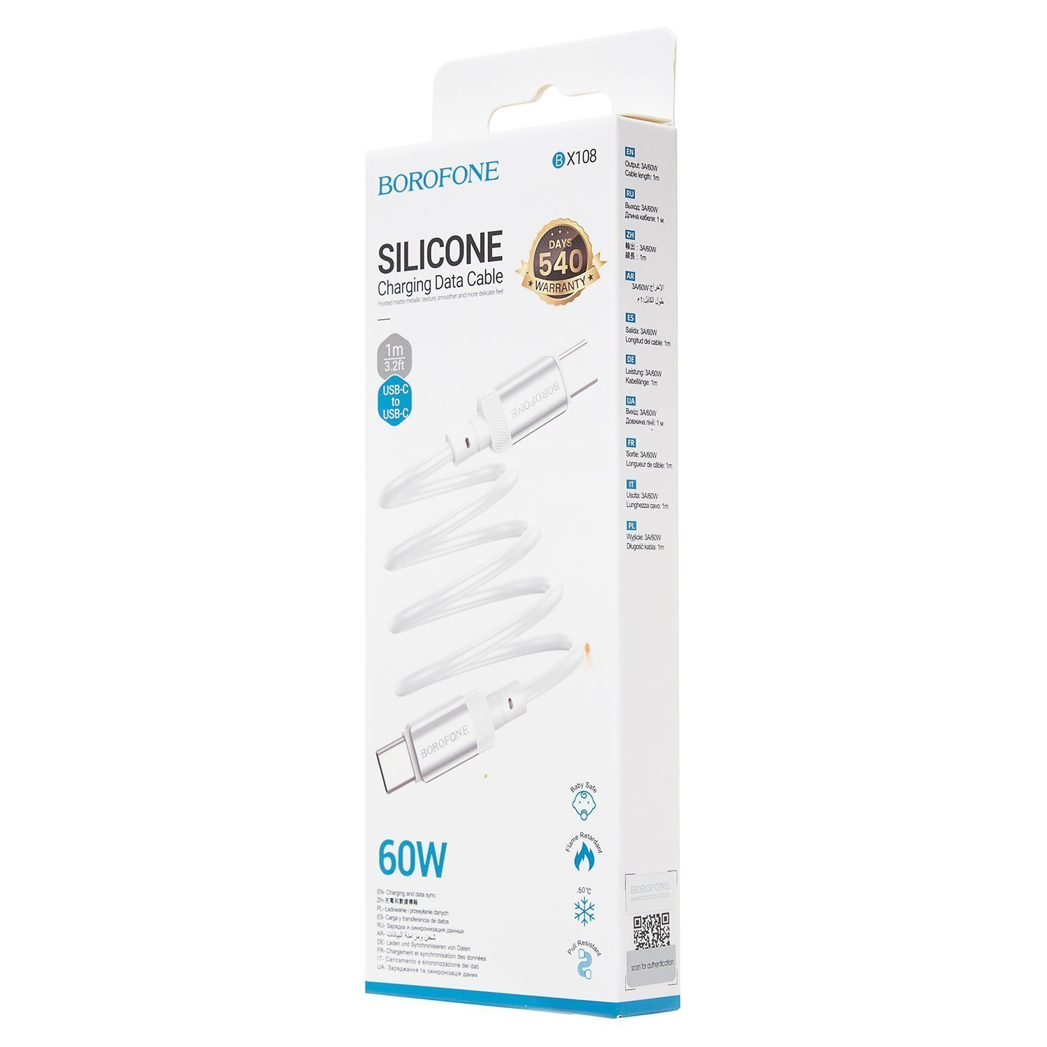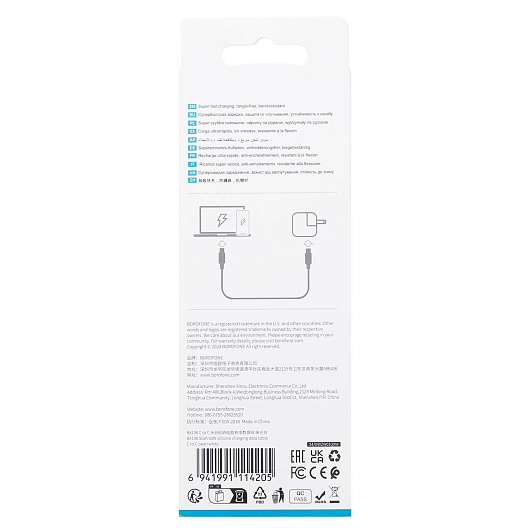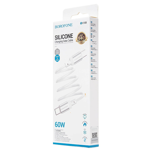 Кабель Type-C - Type-C Borofone BX108 PD 60W 100см 3A (white)