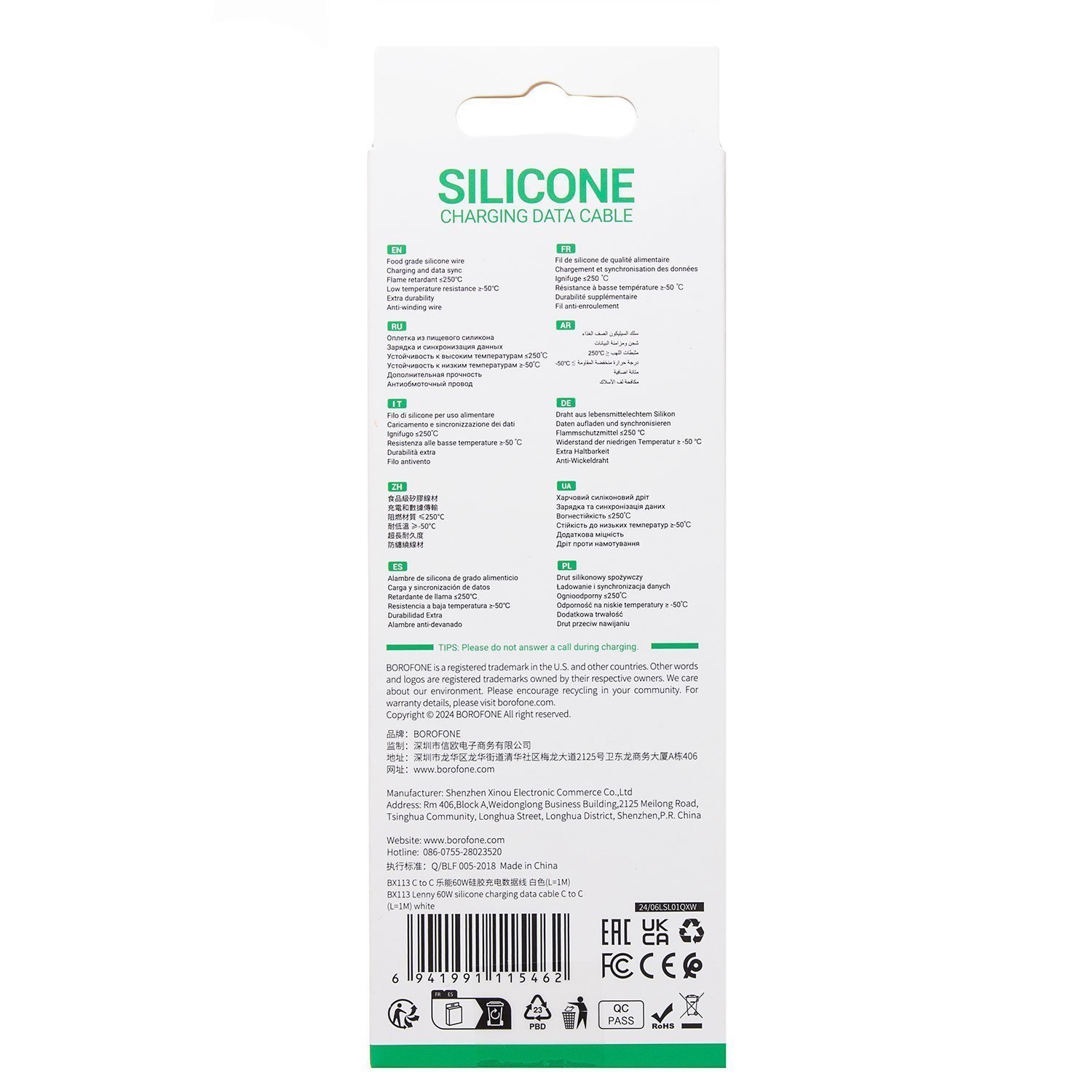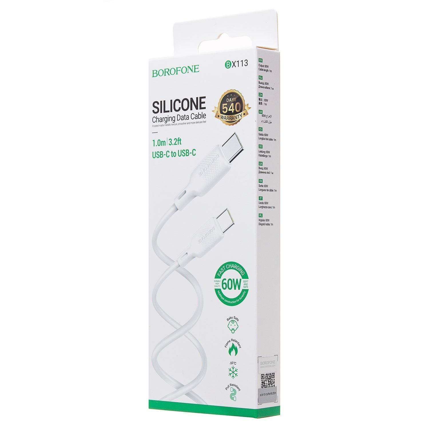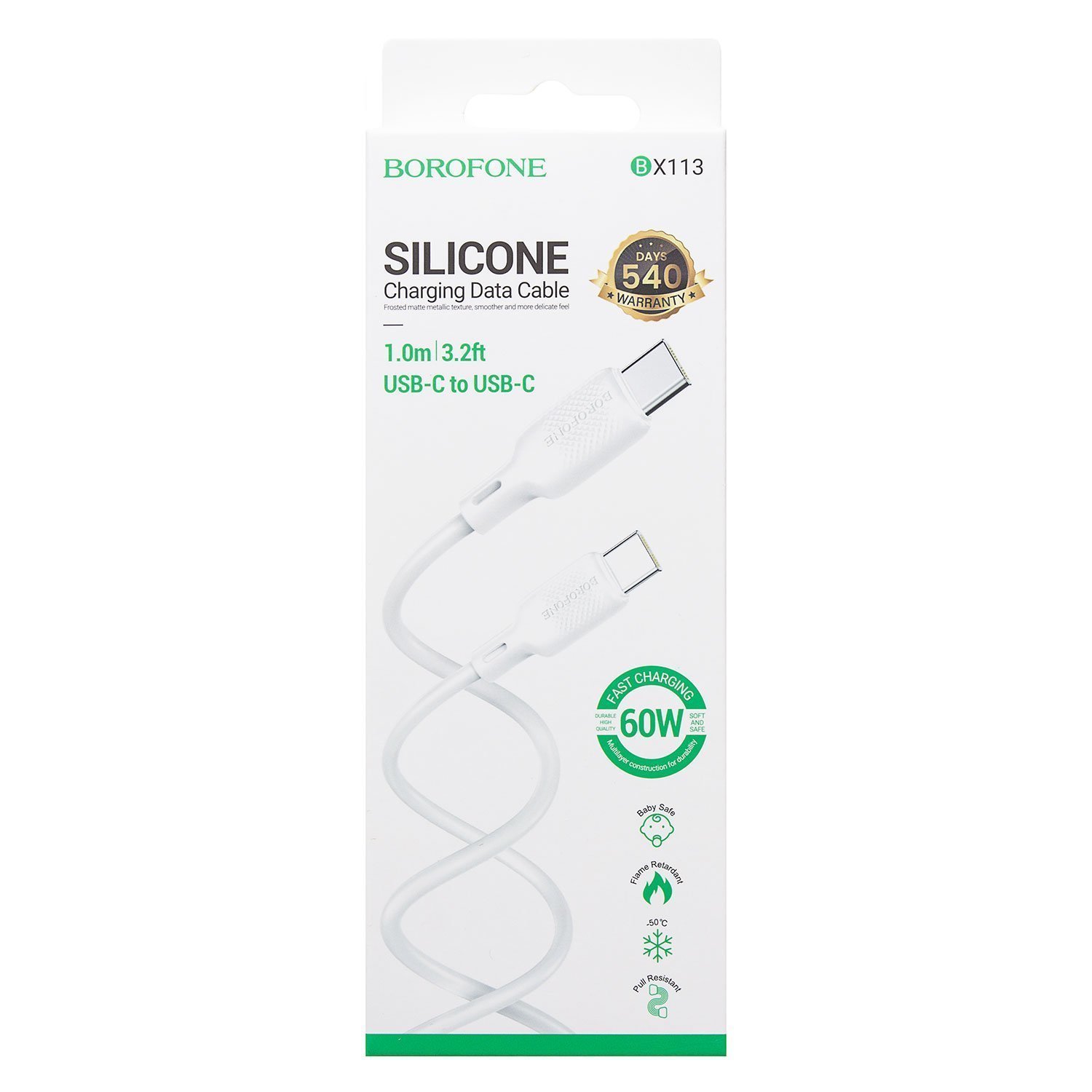 Кабель Type-C - Type-C Borofone BX113 Lenny PD 60W 100см 3A (white)