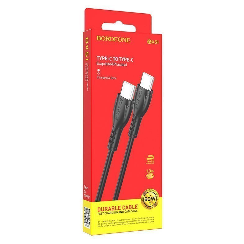 Кабель Type-C - Type-C Borofone BX51 60W 100см 3A (black)