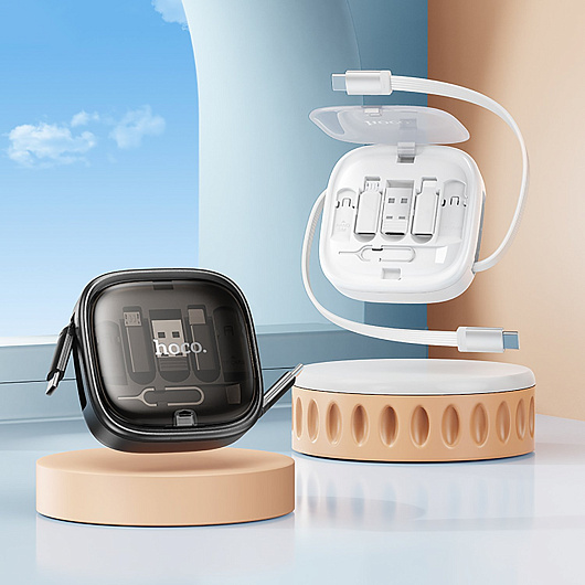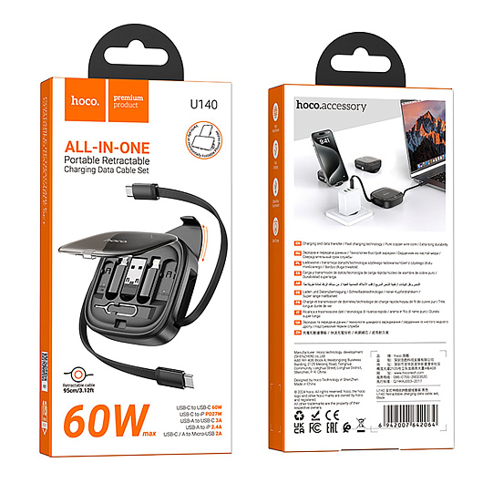 Кабель Type-C - Type-C Hoco U140 Retractable (multiconector) 100W 100см 5A (black)