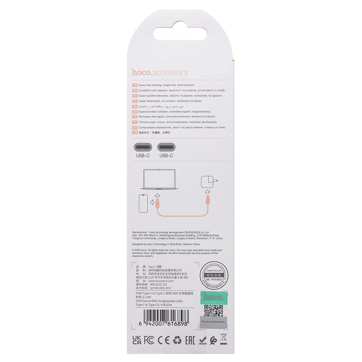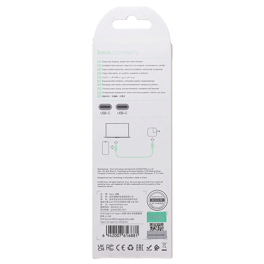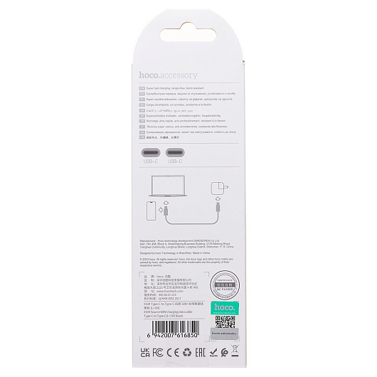Кабель Type-C - Type-C Hoco X104 Source PD 60W 100см 3A (pink)