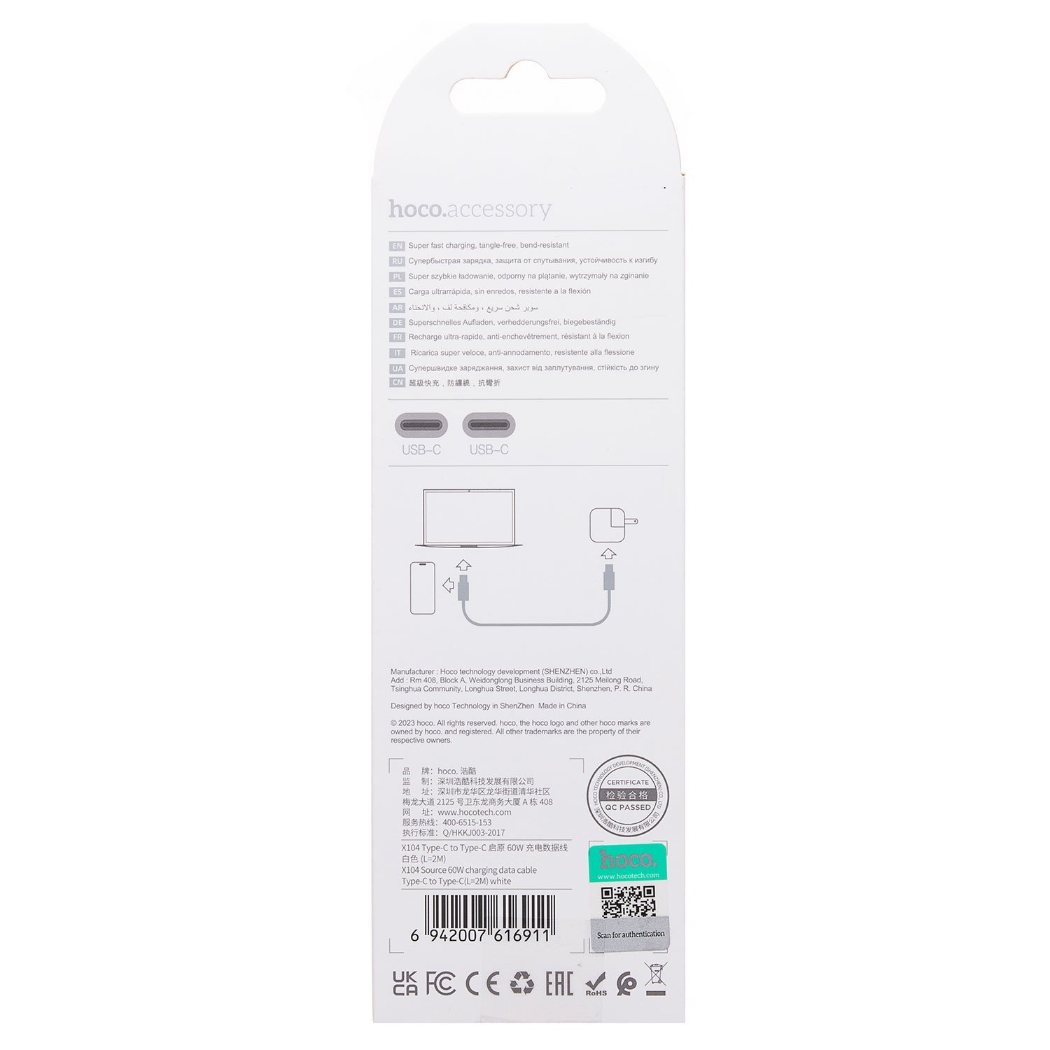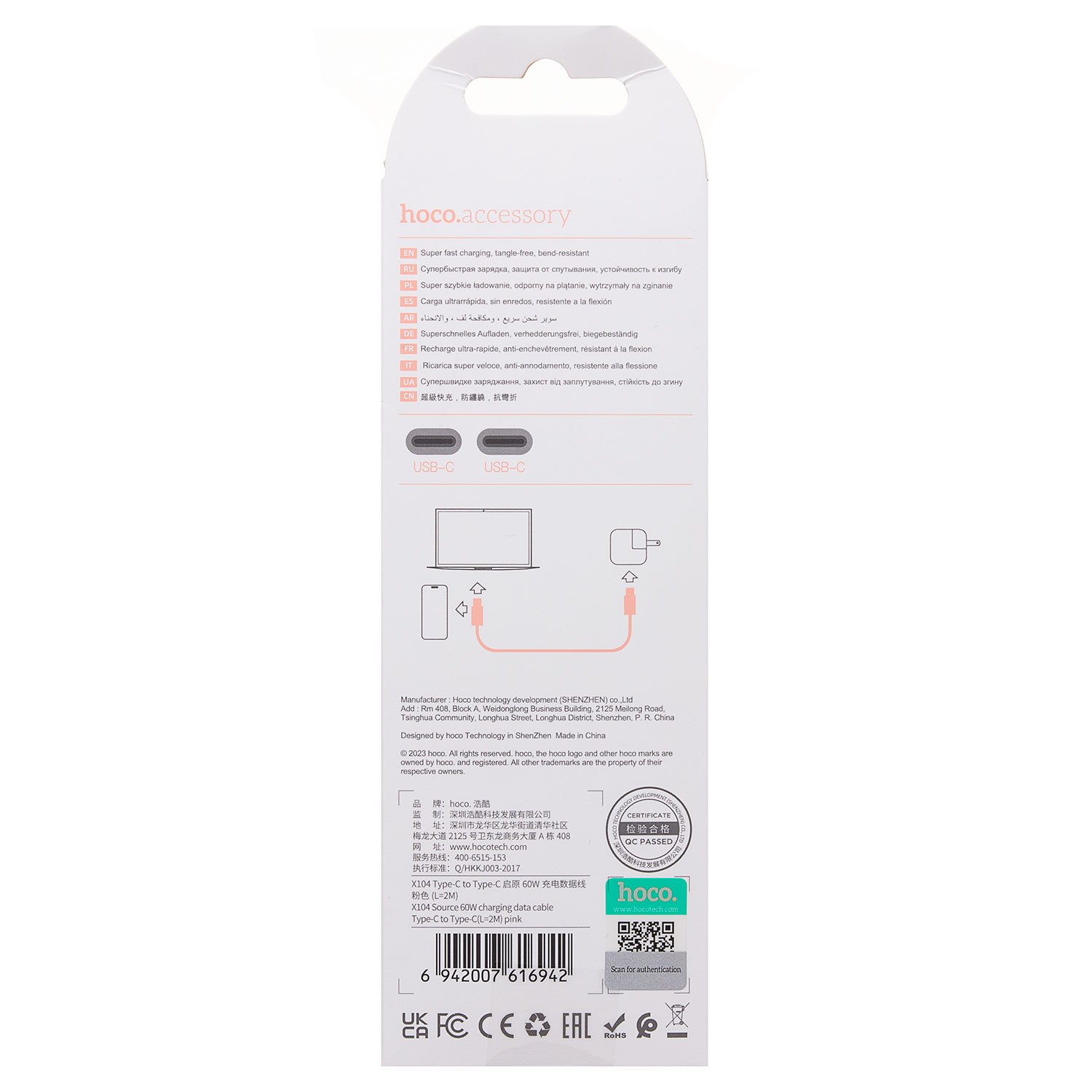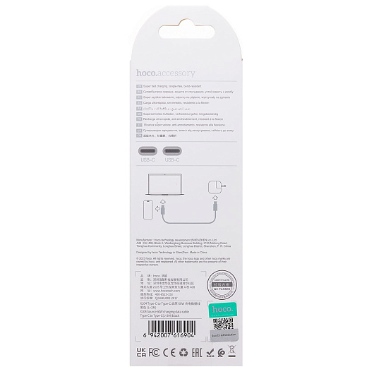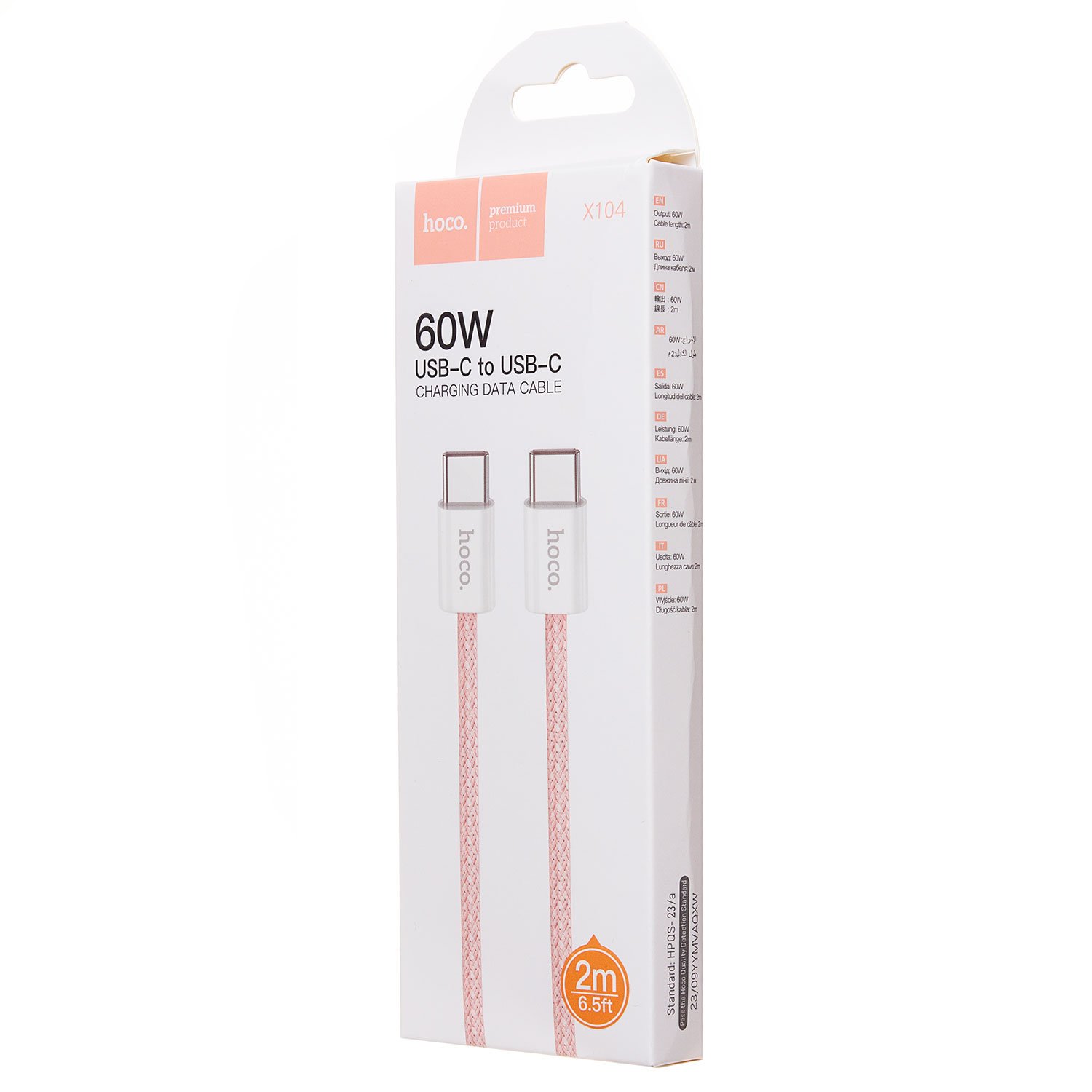 Кабель Type-C - Type-C Hoco X104 Source PD 60W 200см 3A (pink)